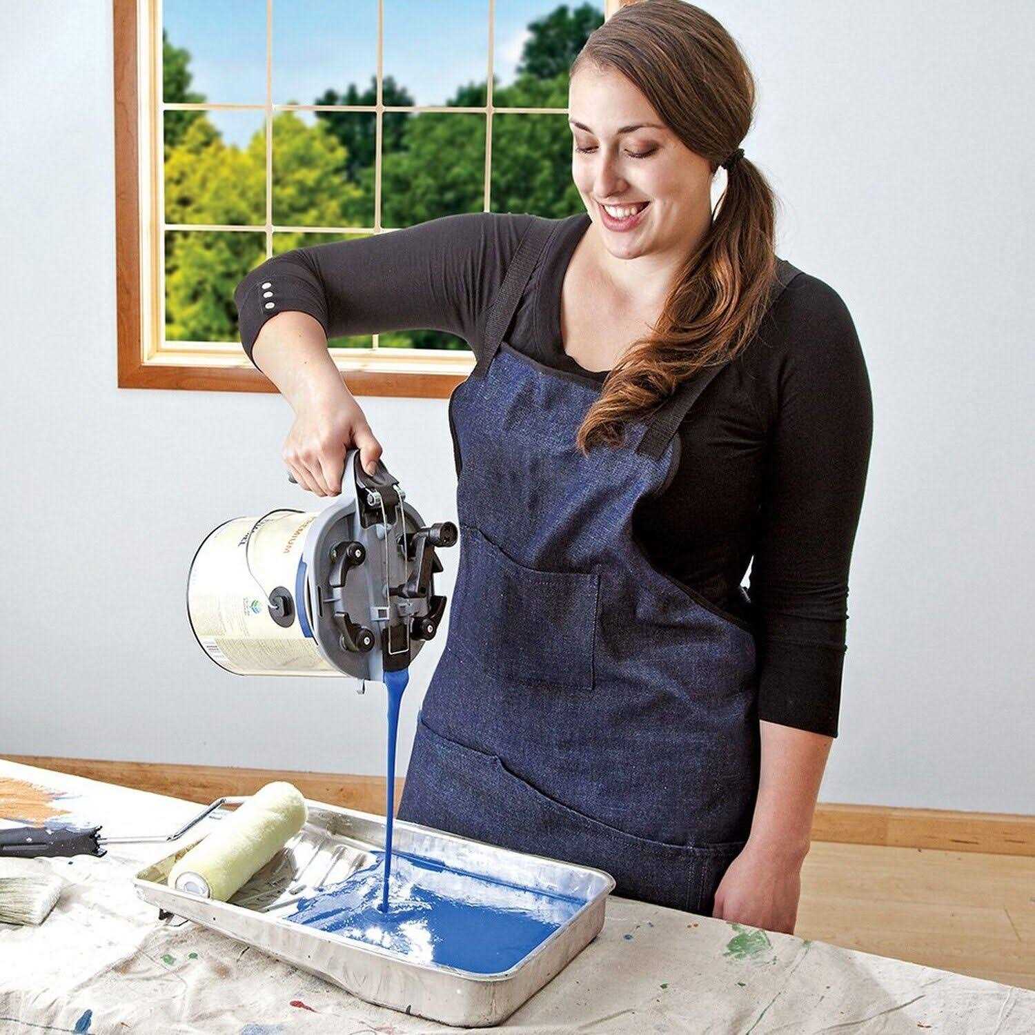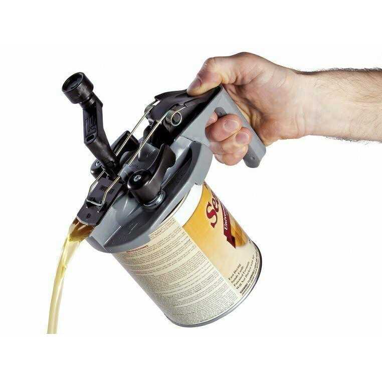 Pistol grip handle makes pouring paint easy and ergonomic. Tool-free cam clamps securely anchor the Mixing Mate Paint Lid to any standard gallon size paint canister – simply twist to secure. Spring-loaded spout seals up tight after each pour – set it on the shelf and you’re done until next time. Fits any standard one-gallon can of paint, stain or varnish. Lid gasket ensures a tight, leak-proof seal to the paint or finishing can. Stir, pour, and store in an instant with one ingenious tool The Mixing Mate Paint Lid makes mixing and pouring paints and finishes as easy and mess-free as pouring syrup from a restaurant-style dispenser. Forget the lid opener, stir stick, punching holes in the rim with a nail and hammer, paint pouring down the side of the can, and trying to bang the lid back onto a gummed up rim without deforming it. The Mixing Mate Paint Lid eliminates all of these problems. Whether you’re pouring paint into a tray, or stain and varnish into your paint gun, you’ll appreciate the easy, drip-free action offered by the Mixing Mate. Simply crank the handle, press the thumb lever and pour. No drips, no mess, no wasted finish. The auger-style mixing paddle lifts pigments from the bottom of the can, doing in seconds what would take minutes with a messy, wasteful stir stick. And when you’re done, simply set the can back on the shelf for storage.