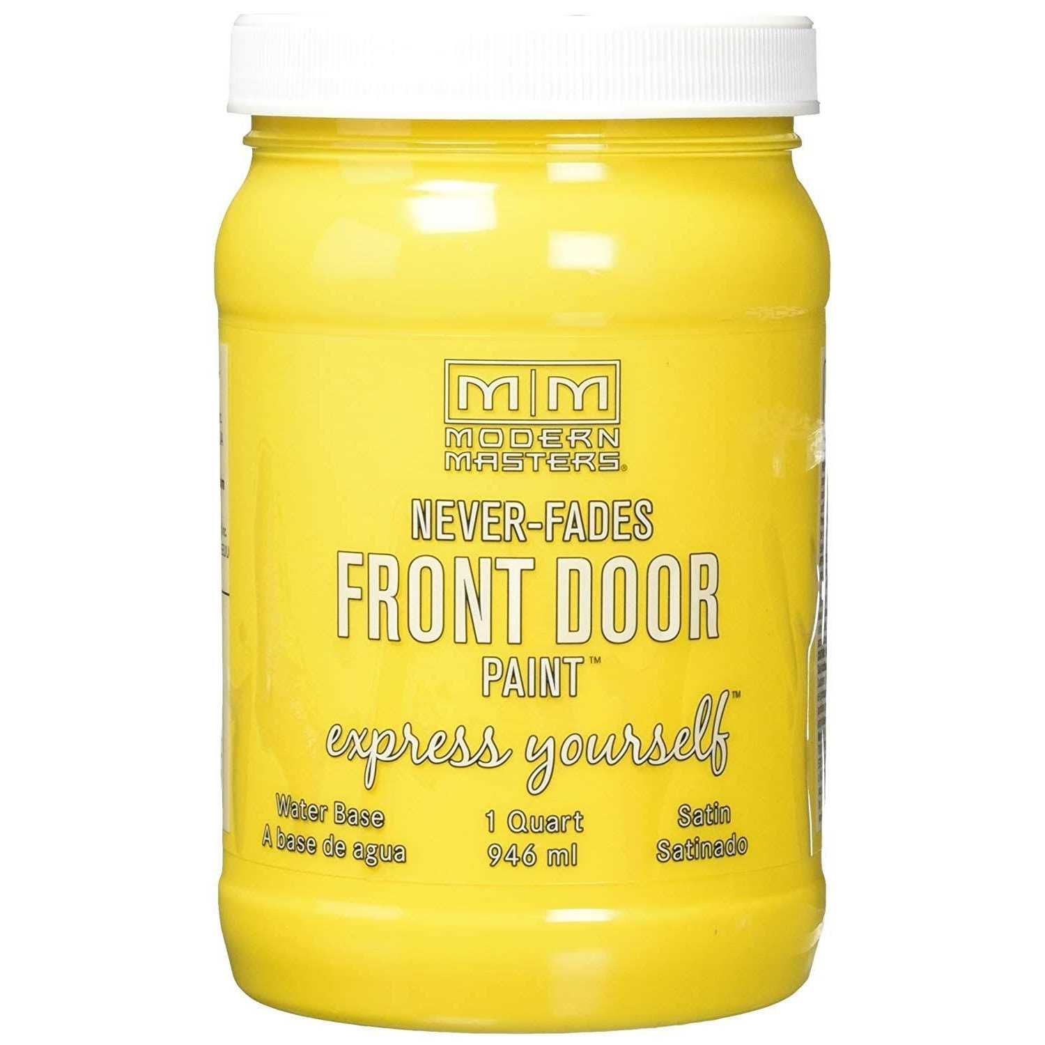Modern Masters Front Door Paint is suitable for application on exterior or interior door surfaces made of fiberglass, wood, or metal. Satin sheen provides a smooth, velvety-looking finish. Water base, quick dry formula will be fully dry in 2 to 3 hours after the final coat. Never-fade technology. Ultra low VOC formula with virtually no odor. Great for shutters and back door too. Brush or roller applied. Cleans up with soap and water.