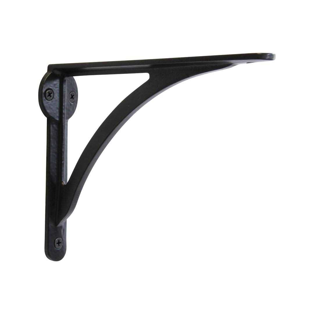 Transform your walls while adding functional storage with the Sleek Iron shelf bracket. Combining clean curves and smooth lines, it gracefully draws the eye to whatever you’re showcasing – adding an understated appeal to any space. This cast iron bracket complements a wide variety of styles, including farmhouse, rustic, modern, minimalist, Scandinavian, traditional, mid-century modern, and more. Since each size of the Sleek bracket is available in some of the most popular hardware finishes, they are a great way to elevate your storage – literally! Introduce open shelving for arranging books and collectibles around the home, storing cocktail supplies and wine bottles above a home bar area, holding dishes and cookware in the kitchen, keeping blankets and diapers above a nursery changing table, and so much more. The universally appealing design of these brackets makes them perfect for use in a variety of commercial and office spaces too. The Sleek brackets are best mounted into wall studs or support beams, and once installed, the matching flathead screws sit flush in the counter-sunk screw holes.