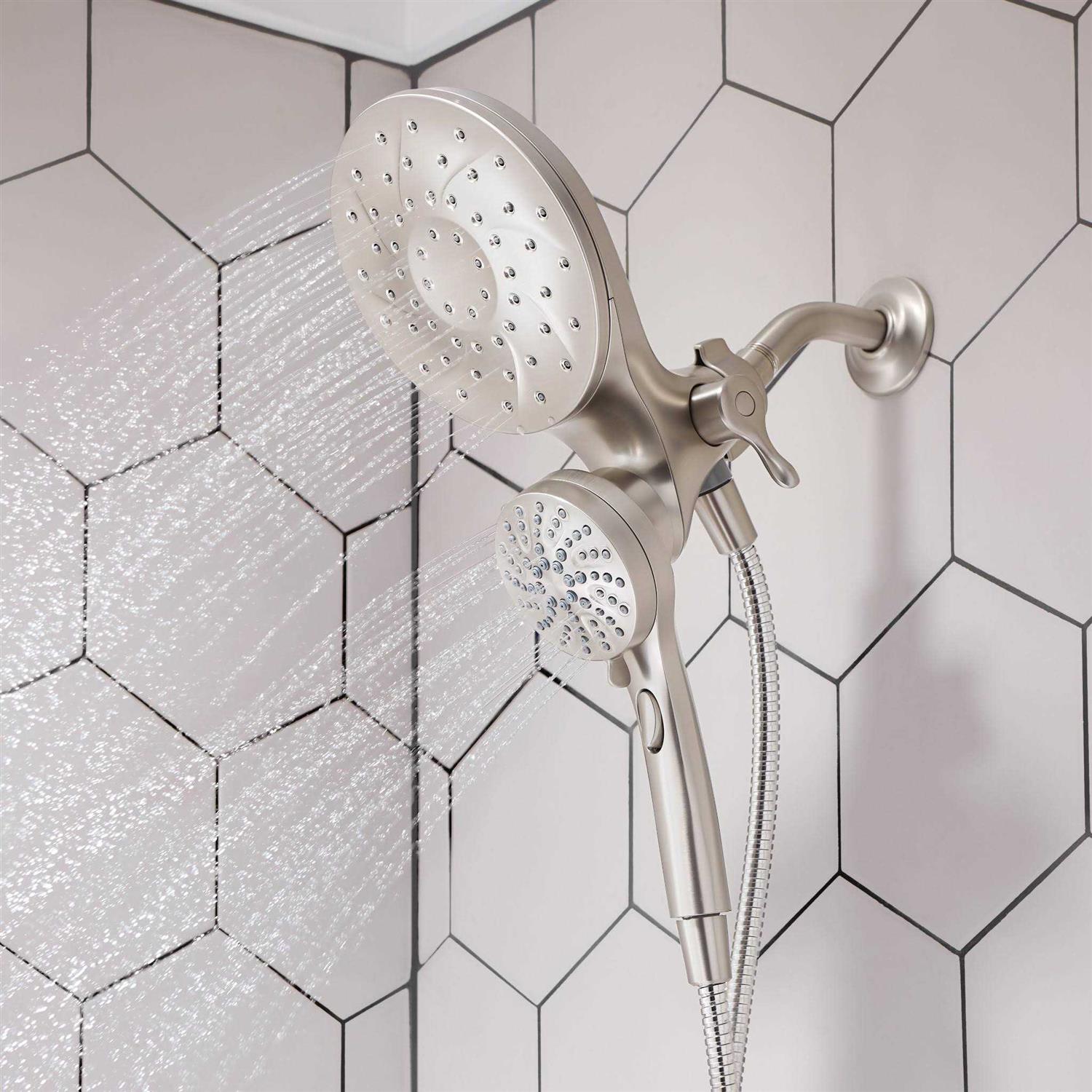 Add customization to your shower with the Engage combination handshower and rainshower with Magnetix. Showerheads with Magnetix offer a powerful magnetic dock that allows for easy release of the handshower, as well as a secure return back into place, even with your eyes closed. Engage features three shower options within a single fixture – use the rainshower and handshower separately, or together for maximum coverage. The handshower also offers six high-performance spray settings, a pause/trickle button to stop water flow momentarily when needed, and a 60 in., kink-free metal hose for extended reach. Available in a chrome finish.