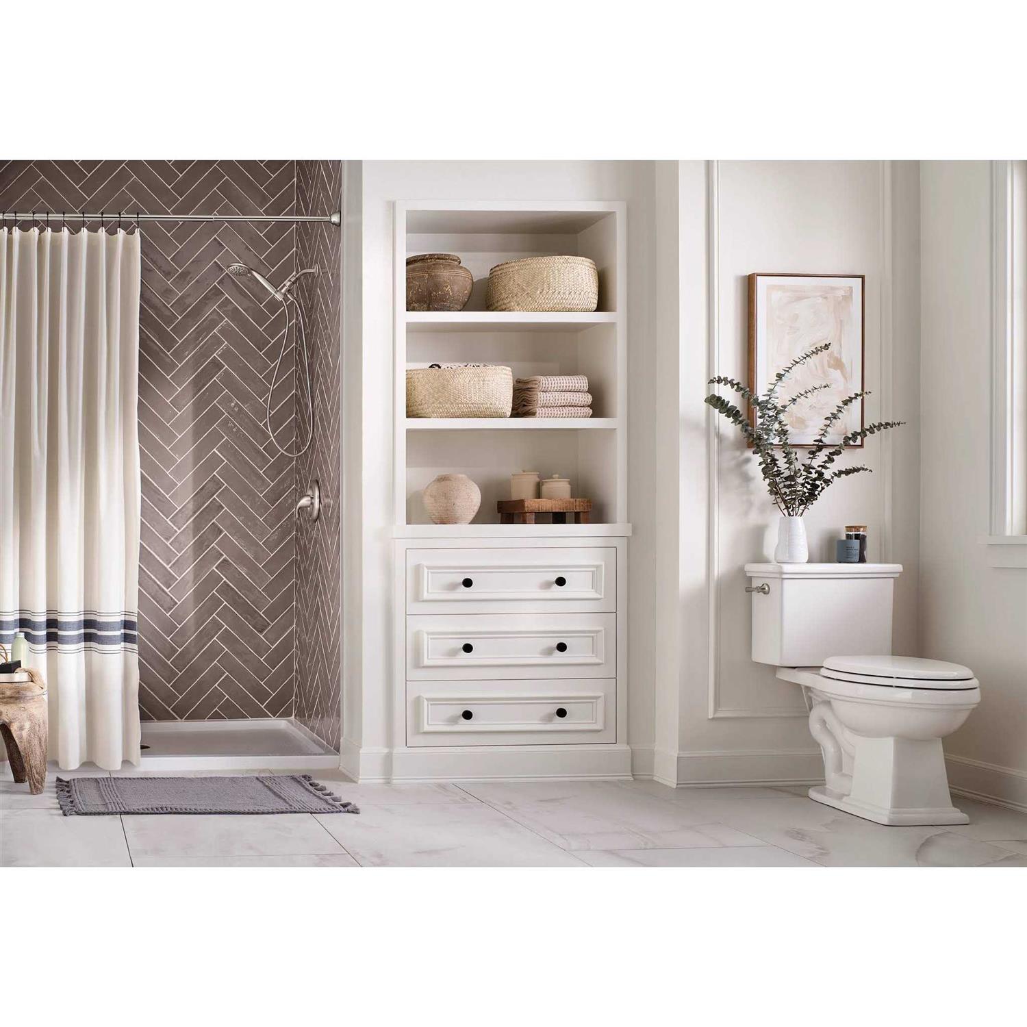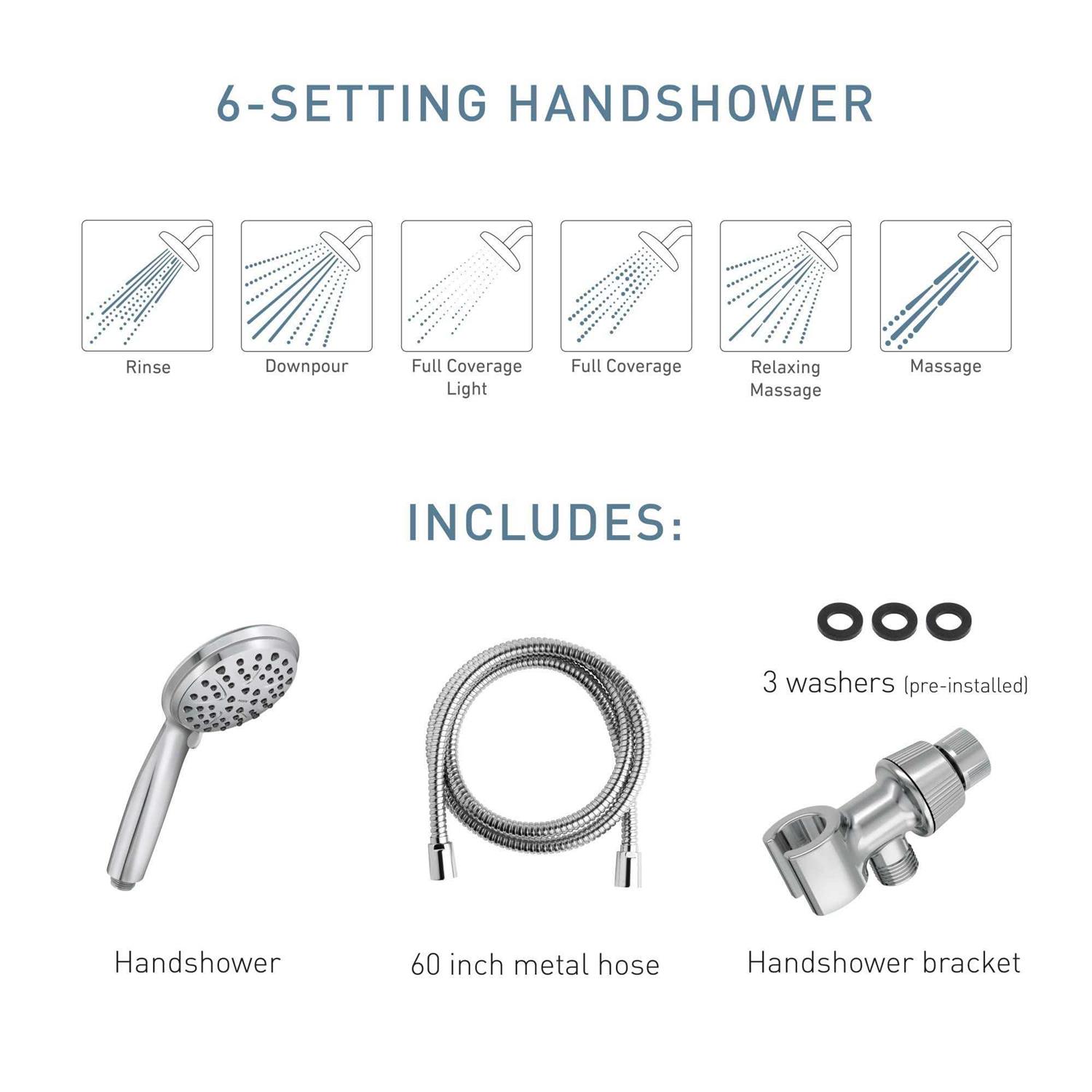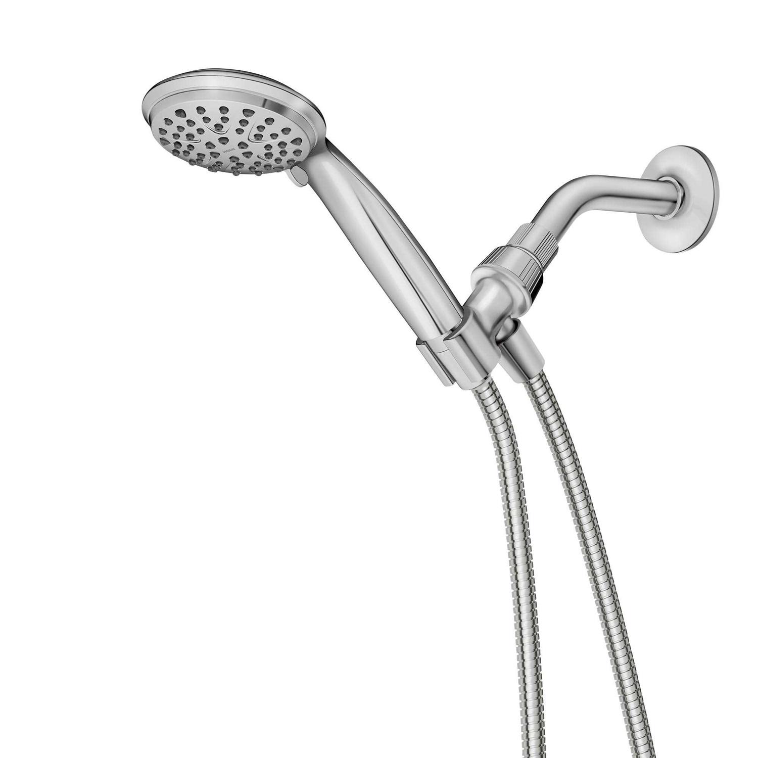Give your bathroom contemporary style with the Attune hand held shower head. Optimized pressure in each of the 6 settings allows for an excellent showering experience every time. MOEN sets the standard for exceptional beauty and reliable, innovative design. Set includes hand held shower, bracket, and 60in flexible metal hose. From finishes that are guaranteed to last a lifetime, to faucets that perfectly balance your water pressure, Moen sets the standard for exceptional beauty and reliable, innovative design. From the sophistication of period Traditional to the streamlined refinement of minimalist contemporary, you’ll find a host of amazing ways to express your style with products from Moen.