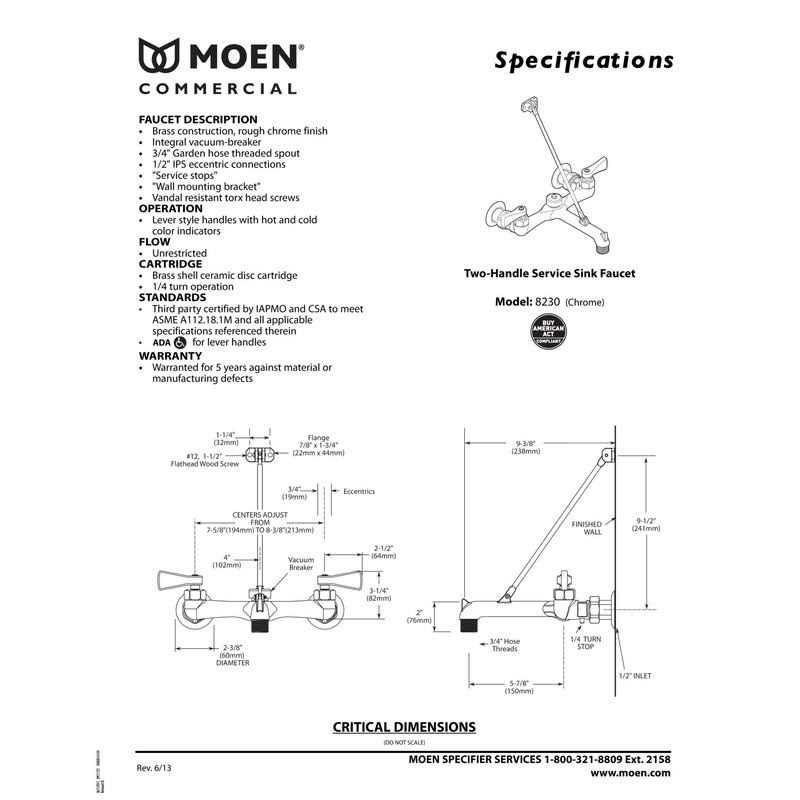 Moen 8230 M-Dura Two-Handle Service Sink Faucet