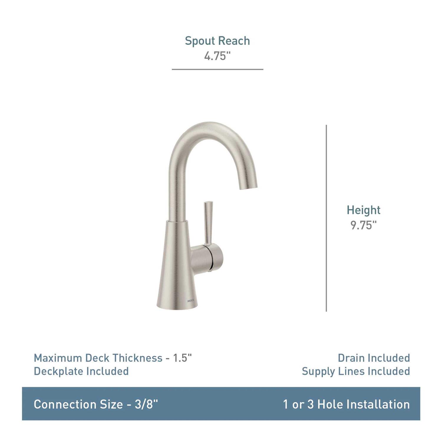 Moen 84021BL Ronan One-Handle Single Hole Modern Bathroom Sink Faucet with Optional Deckplate and Spring Drain Finish