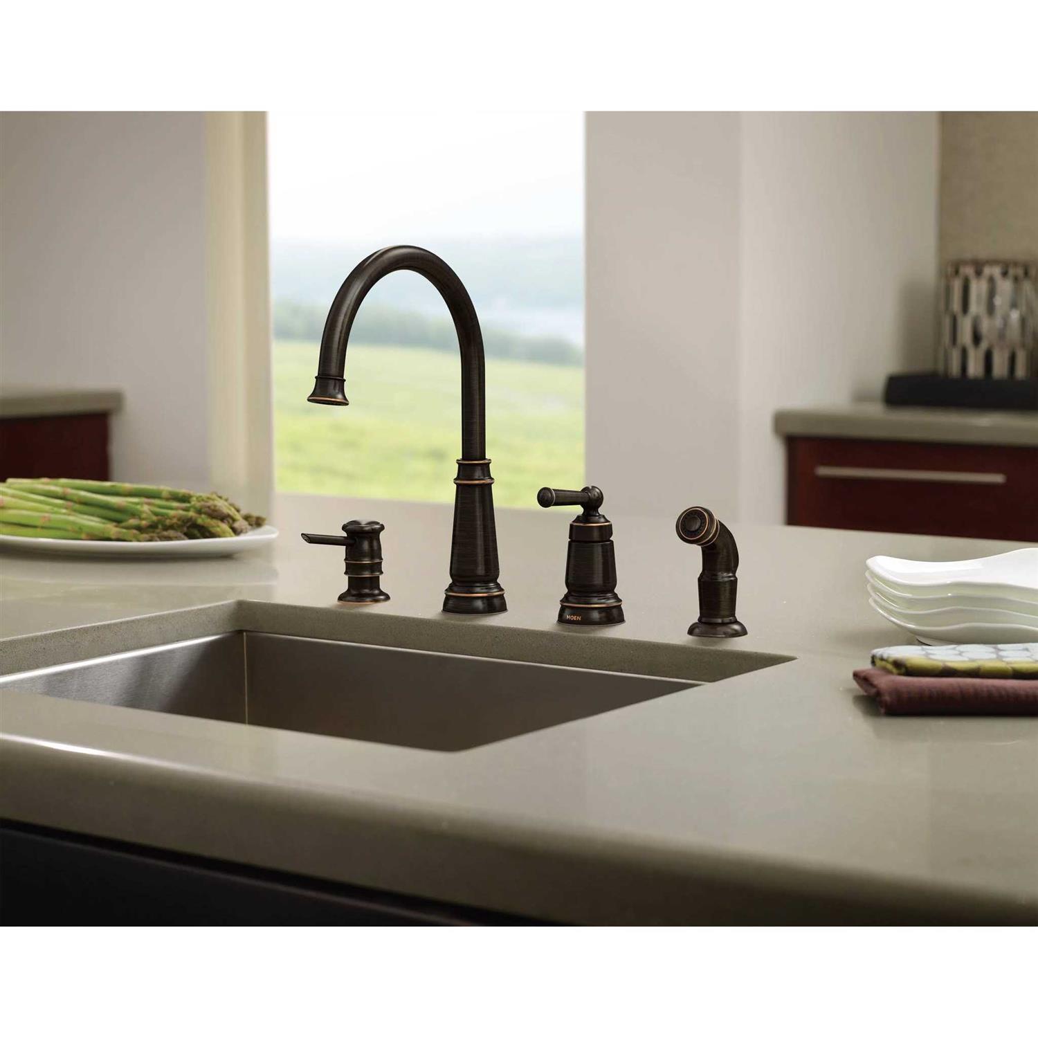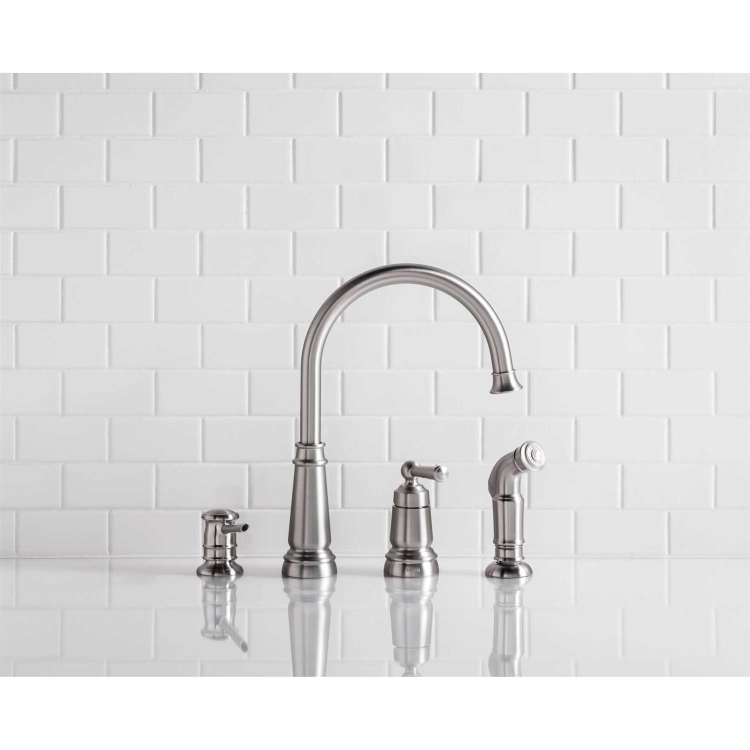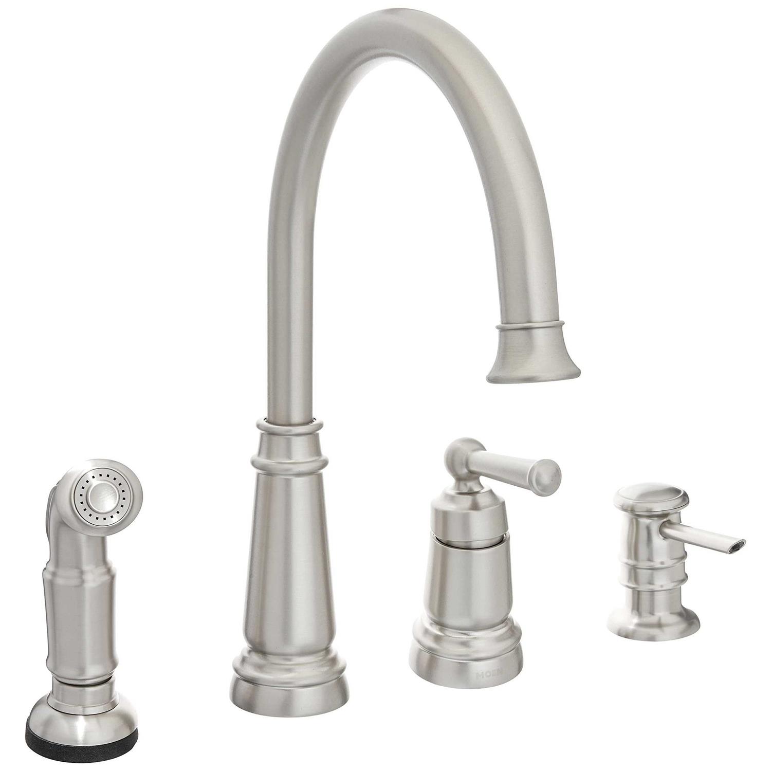 Open-Box — Spot resist stainless finish resists fingerprints and water spots for a cleaner looking kitchen. One–handle lever handles make it easy to adjust the water. Included side spray for convenient cleaning at the sink. Aerated stream for everyday cleaning. Soap/lotion dispenser included for fully coordinated convenience. Standard design mounts on the sink or counter top. Meets current legislation, including AB1953 (California) and S152 (Vermont).