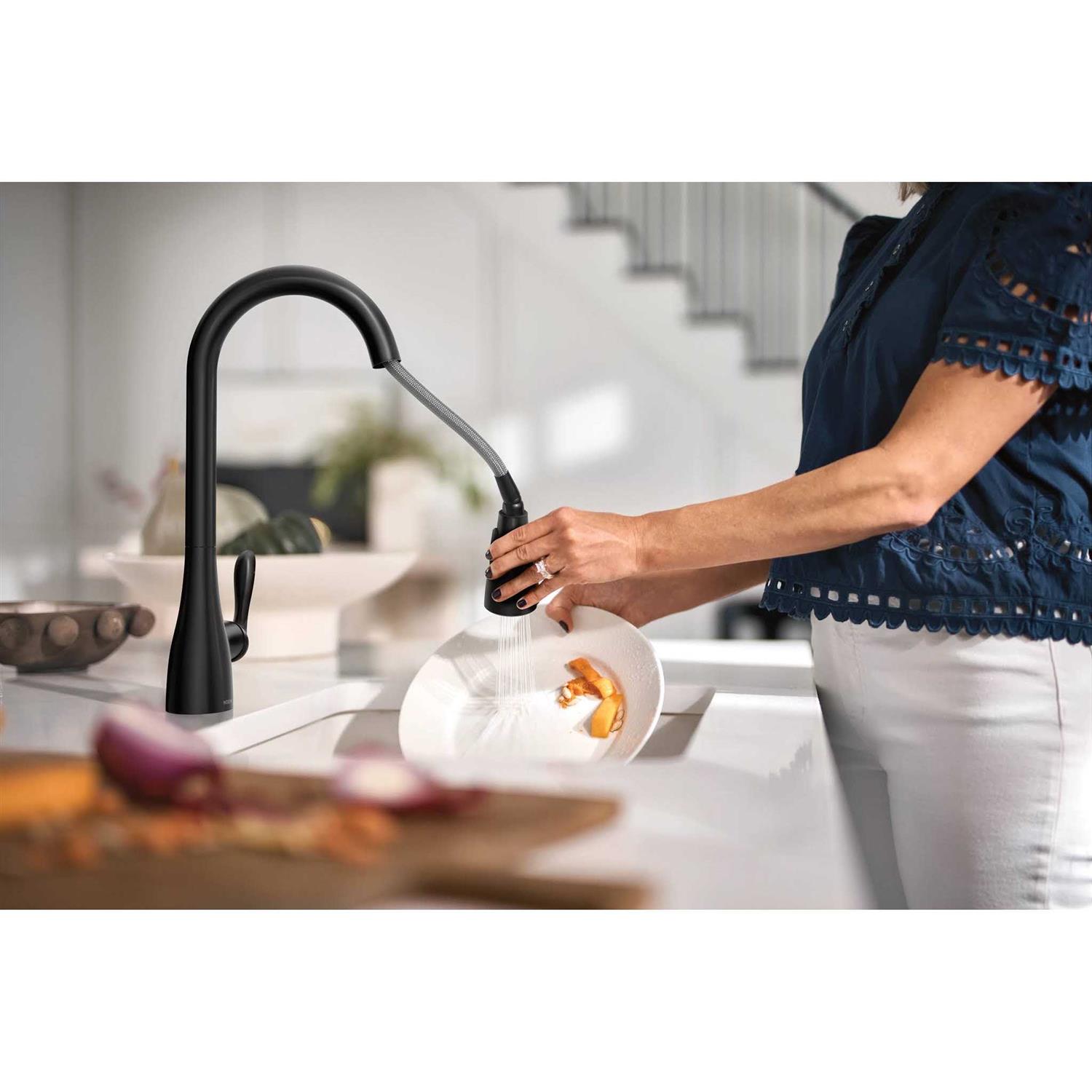 Moen 87912BL Georgene Matte Black Single Handle High-Arc Kitchen Faucet with Sprayer Function