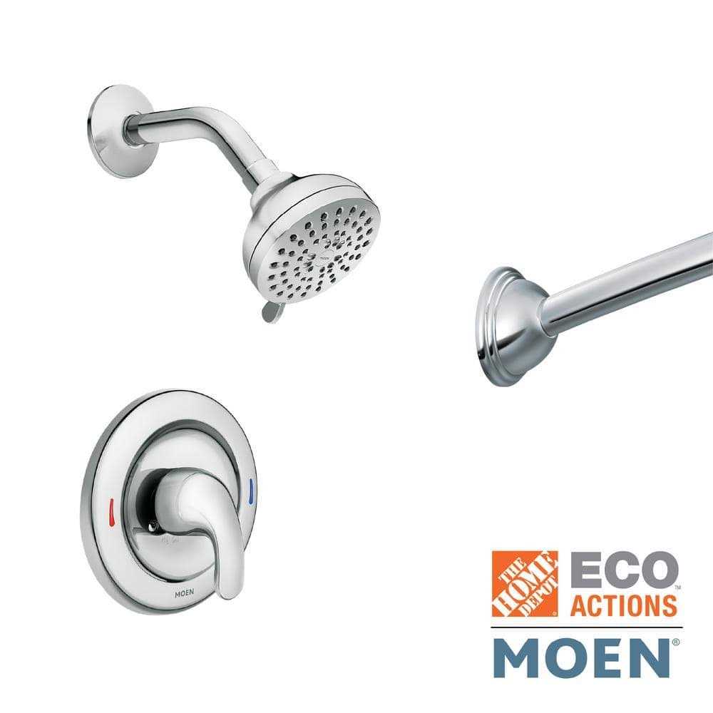 Peak performance and style combine with this MOEN Adler 1-Handle Shower Faucet. It promotes comfort by maintaining the water pressure and temperature with the Posi-Temp pressure balancing valve feature. Blend the faucet seamlessly with any existing decor due to the neat and polished chrome finish. This a single-function fixture that allows you to use the lever and knob as handle options when you need.