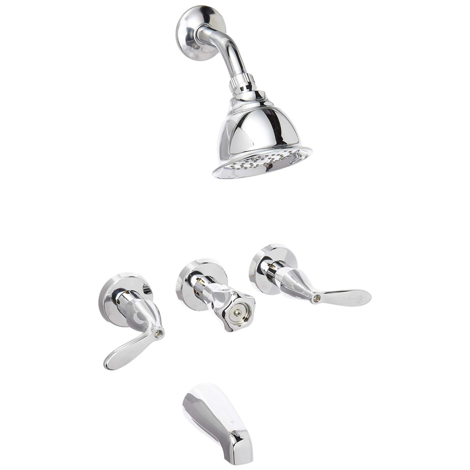 - Adler, Chrome, 3 Handle, Tub & Shower Faucet, Includes