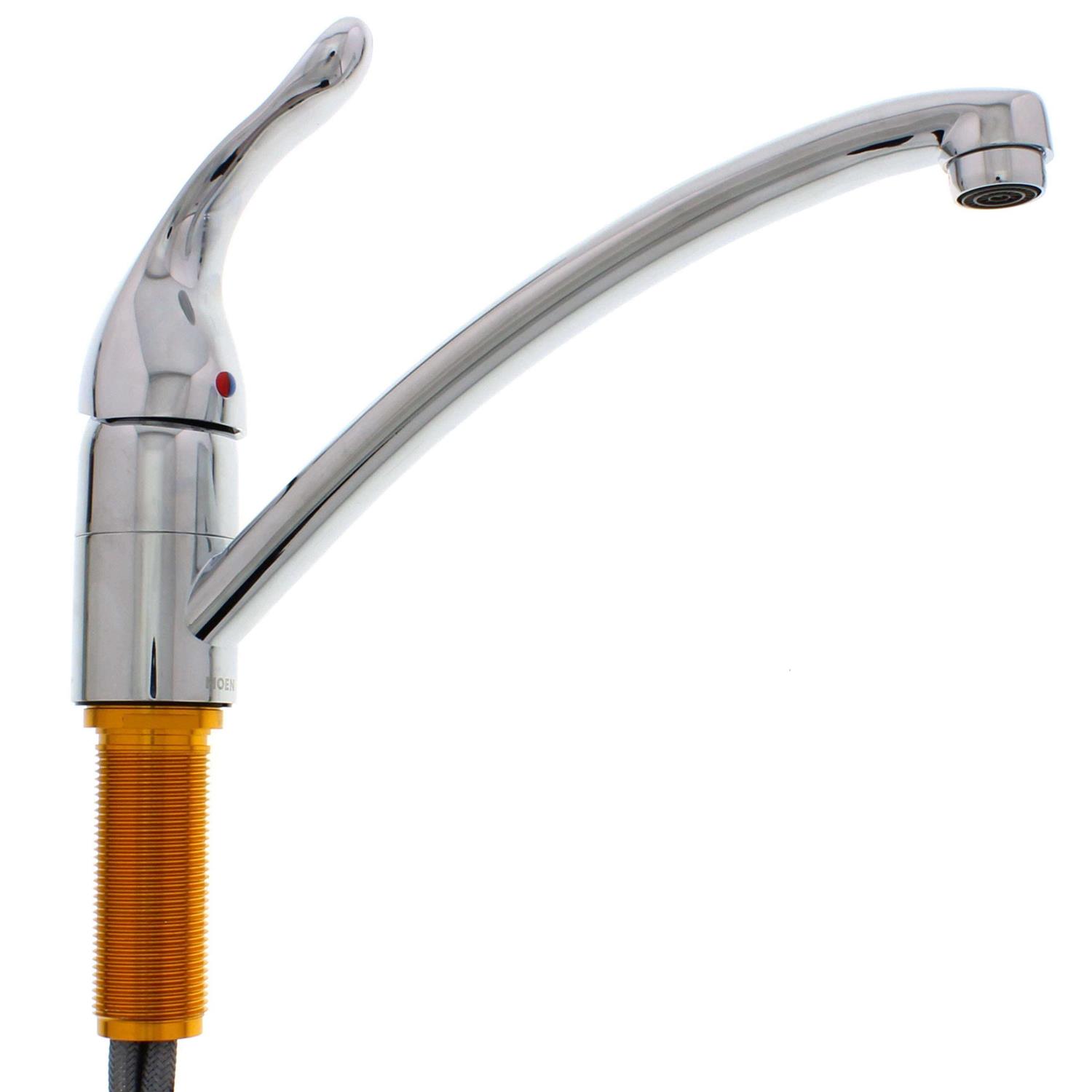The Chateau collection delivers Moen performance and reliability with a simple, understated appeal. A chrome finish creates a bright, highly reflective look, while the low-arc spout is designed for the more conventional kitchen. Chrome finish is highly reflective for a mirror-like look that works with any decorating style. Chrome finish is highly reflective for a mirror-like look that works with any decorating style. Features Duralock quick-connect system for easy installation. One-handle lever handle makes it easy to adjust the water. Includes side spray hose for convenient, flexible cleaning at the sink. Aerated stream for everyday cleaning. Standard design mounts on the sink or countertop.