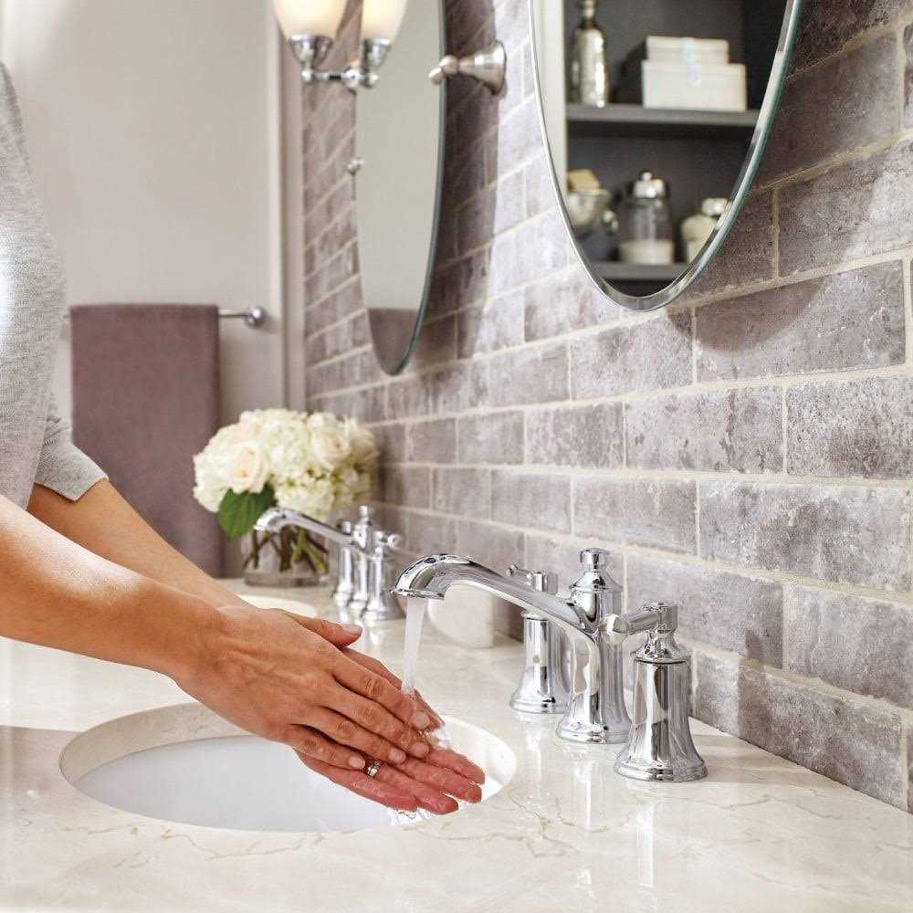 Product Specifications: Overall Height: 5-1/8 (measured from counter top to the highest part on faucet) Spout Height: 4-1/16 (measured from counter top to spout outlet) Spout Reach: 5-1/16 (measured from the center of faucet base to the center of spout outlet) Installation Type: Widespread (spout and valves/handles appear to be separate) Number of Holes Required For Installation: 3 Faucet Centers (Distance Between Handle Installation Holes): 8 – 16 Flow Rate: 1.2 GPM (gallons-per-minute) Maximum Deck Thickness: 1-1/2 2 handles included with faucet Valve Type: 1234 cartridge design Rough-In Valve 9000 Required for faucet to function (Sold Separately). Designed to be a catch-all valve system, once M-PACT is installed you can upgrade the style of the lavatory or shower faucet without replacing nay of the faucet plumbing. WaterSense/Eco-Performance: Moen is making a global difference by partnering with environmental organizations and creating eco-friendly products. WaterSense products feature a flow optimizing aerator; these products use less water without sacrificing performance. LifeShine Non-Tarnish Finish: Moen LifeShine finishes are guaranteed not to tarnish, corrode or flake off for the duration of their life. Providing the durability and wearability of chrome in a variety of beautiful, decorator-inspired finishes. The LifeShine finish is in the surface rather than on it, resulting in color stability for a lifetime. The PVD technique used also helps to eliminate hazardous by-products during manufacturing.