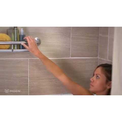 Stay steady in the shower and easily access soap, shampoo, and other bath products with the Moen Grab Bar with Corner Shelf. This grab bar supports up to 250 pounds and provides a reliable handhold for bathtubs and showers. The curved bars streamlined design includes an integrated corner shelf with removable white tray. It also features a SecureMount design for easy, secure installation at any angle. Made from durable stainless steel, this 1-inch diameter shower grab bar with shelf features a warm brushed nickel finish that coordinates with almost any bath decor.