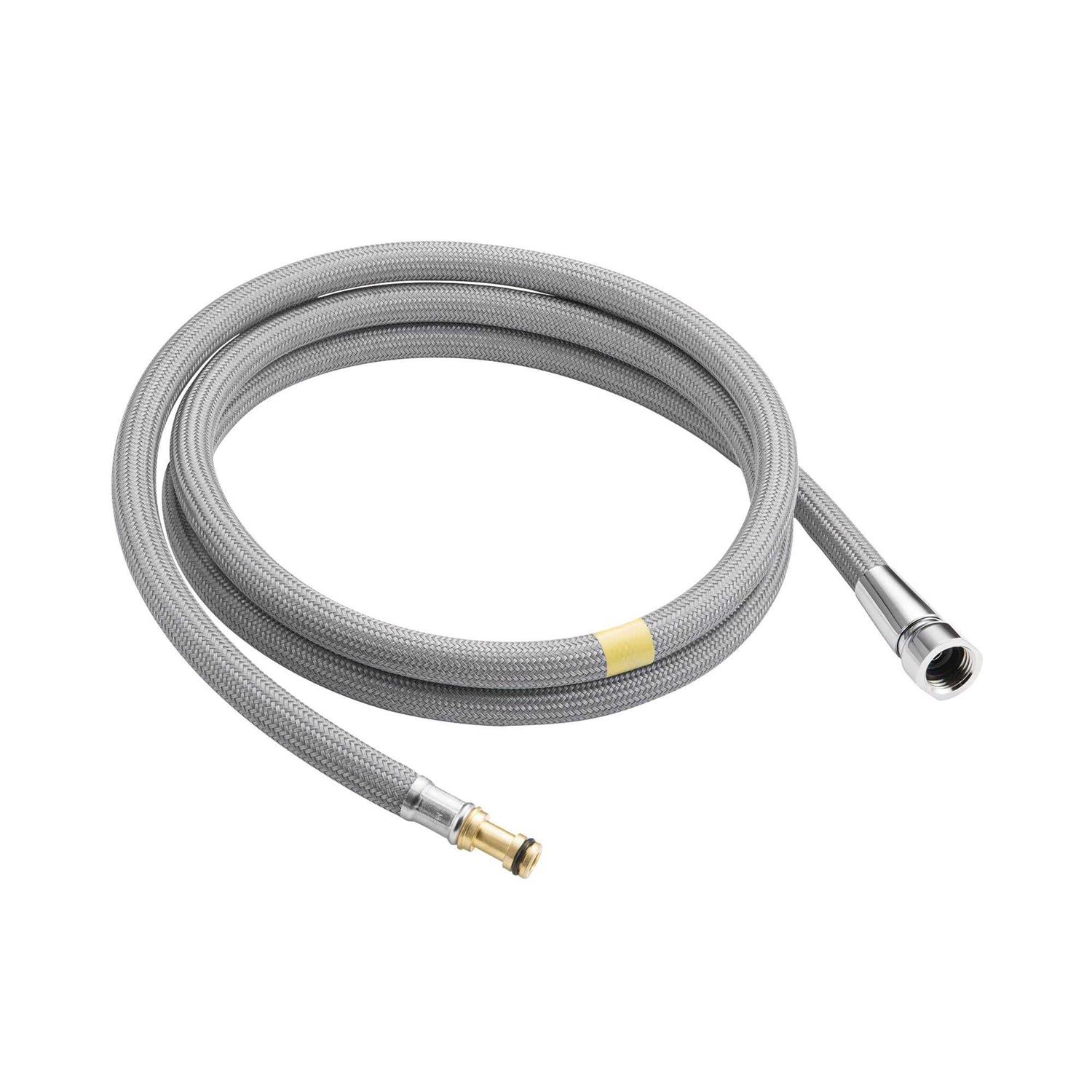 Moen’s replacement hose kit is compatible with any Moen pulldown kitchen faucets The chrome finish of the docking part is highly reflective for a mirror-like look that works with any kitchen decorating style Moen’s kitchen faucet Part Service Kits offer a One Year Limited Product has two part numbers. The hose part number is 187108. The box the product comes in shows part number 150259.
