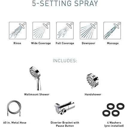 - Five-Function Wide Coverage; Downpour; Massage; The Drench Spray Function Offers Soft Yet Heavy Rinse Which Is Perfect For Bathing Kids Or Pets; Rinse
