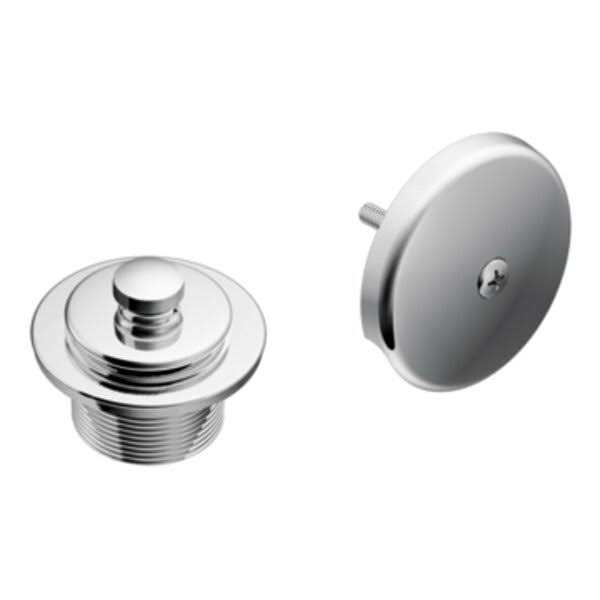 Moen T90331 1-1/2″ Threaded Tub Drain Kit with Push-N-Lock Drain Assembly Tub Drain Trim Kit with Push-N-Lock Drain Assembly – Product Features Metal construction – Push-N-Lock trim – All metal trim – Push to close, pull to drain – Fits 1-1/2″ threaded drains – Can be used for a overflow cover that requires 2 screws by purchasing the Moen 142538 conversion kitlifetime limited warranty5 year warranty if used in commercial installations Chrome
