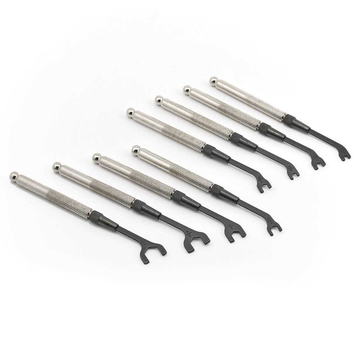Made in the USA! These high-quality miniature wrenches are offered in sought-after small sizes. Moody Brand Acu-Min Multi-Steel handle with 30 degree offset. 4 inches long. Set includes vinyl storage pouch.