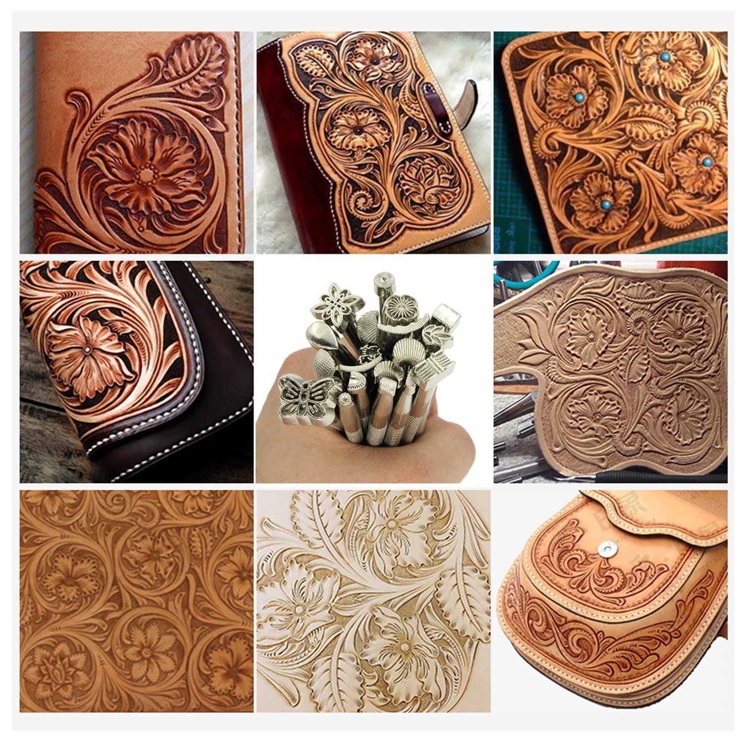 Leather Working Stamping Tools Kit: Our leather tools kit including 20 x leather carving stamps,1 x swivel knife,1 x leather hammer,1 x Tracing pen,5x tracing paper,great craving tools set is suitable for beginner and professional craft man. Leather Carving Stamps Tools:the leather carving kit are made with clear texture, appearance silver, beautiful patterns and durability to meet your different needs. The handle has a non-slip texture and an elegant appearance. Leather Engraving Set:Rubber hammer works with leather stamps, to make the printed pattern on the leather more clear. The tracing embossing stylus tool is double-ended for easy use, and the rounded tip is designed to protect the leather from cuts ,satisfy your needs during drawing patterns. Swivel Knife and Tracing Paper:The professional leather Swivel knife can be adjusted for different sizes of hands and is the best choice for professional leather smiths;Translucent tracing paper is tough, not easy to break and other characteristics, there is plenty of space to meet your painting and sketching. High-Quality Carving Stamps Kit