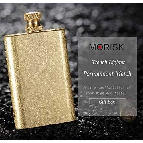 Morisk Lighter Permanent Match, Cool Pipe Lighter Fluid Refillable, Copper Vintage Trench Lighters, Creative Auto Fire Starter, EDC Reusable Forever