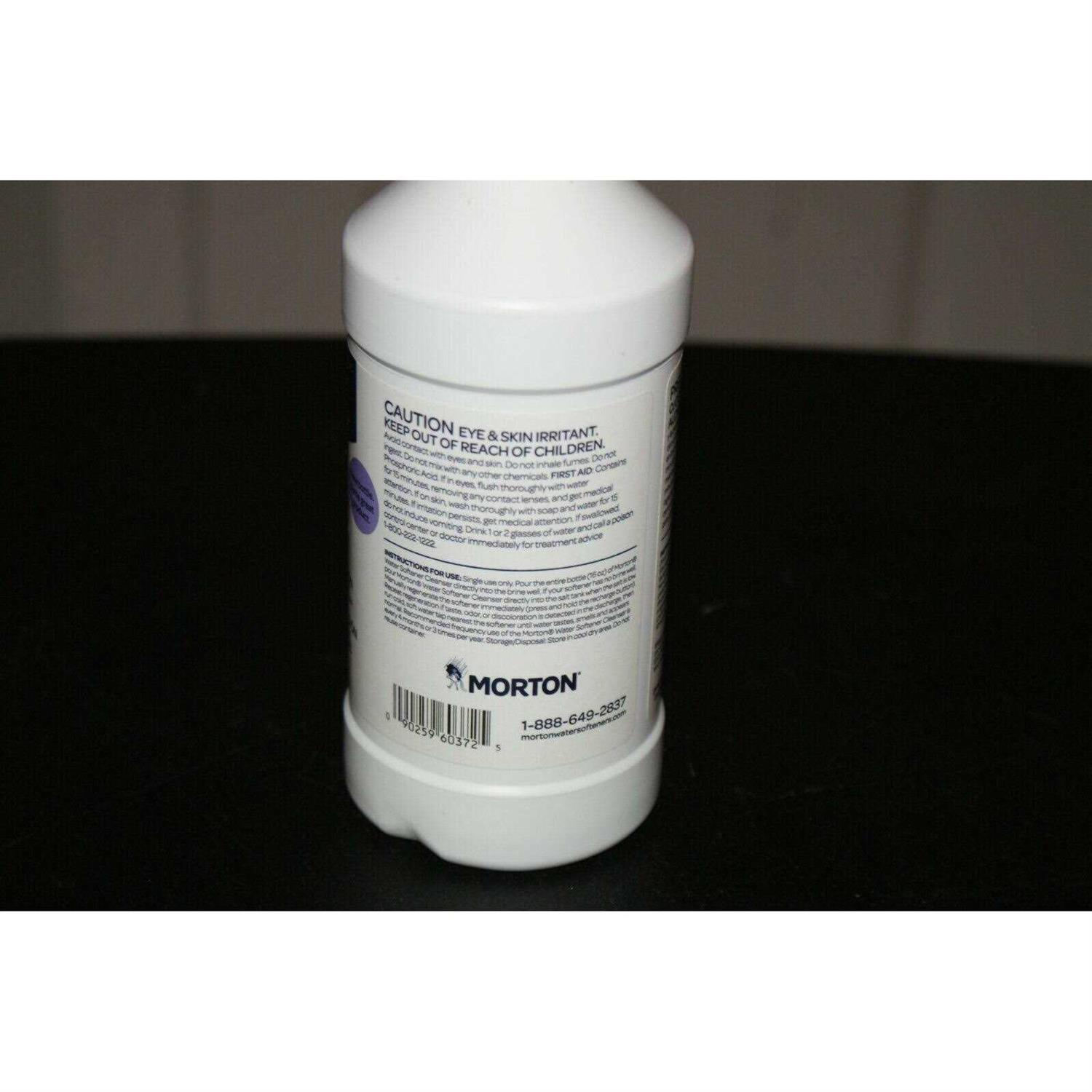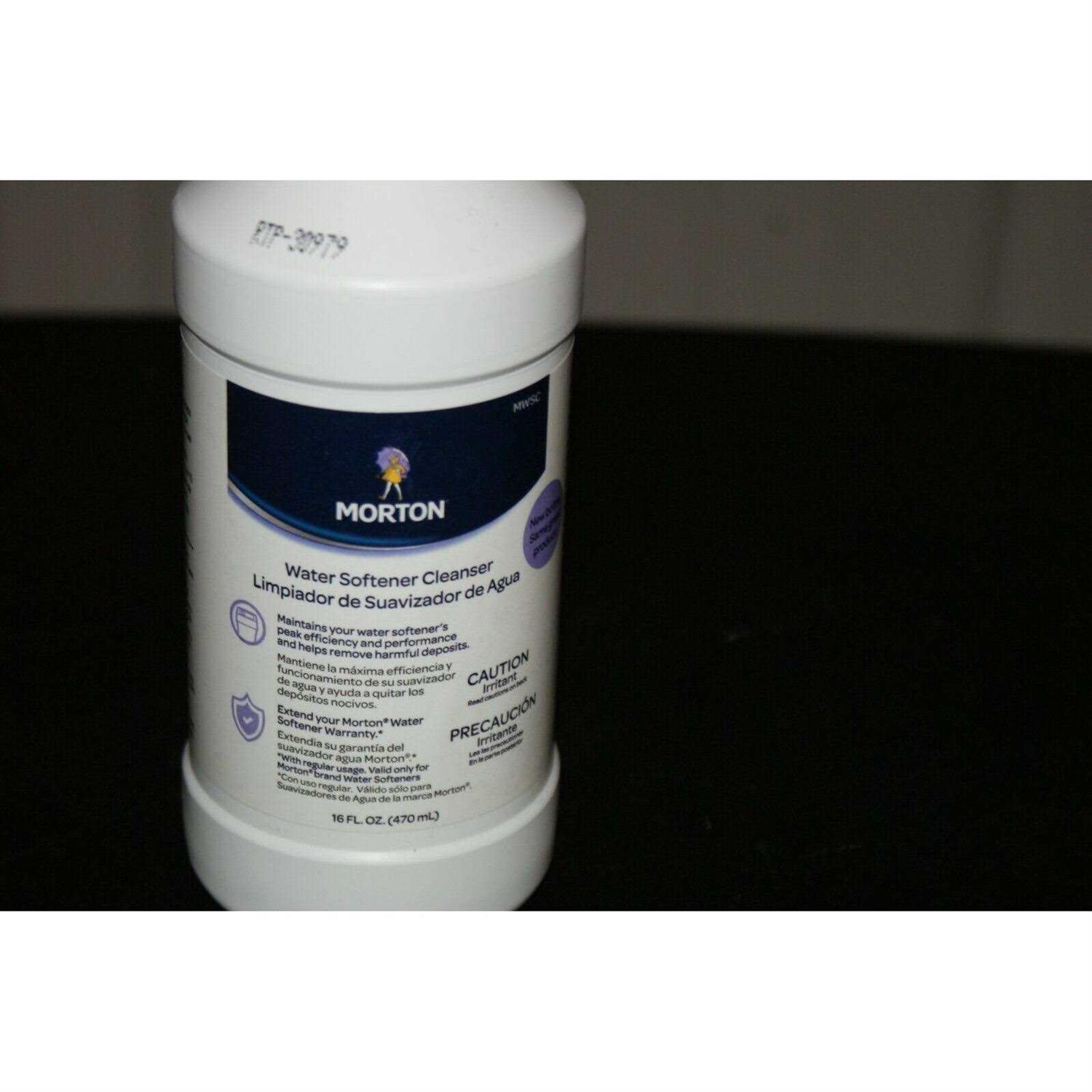 Water Softeners by Morton. Details:Maintains your water softeners peak performance and efficiency. Universal cleaner, can be used to remove contaminants in your water softeners resin bed that salt alone cannot remove. Efficiently designed, no need to mix and measure powders like other water softener cleaners, just pour contents of one bottle into the brine well and regenerate the system.