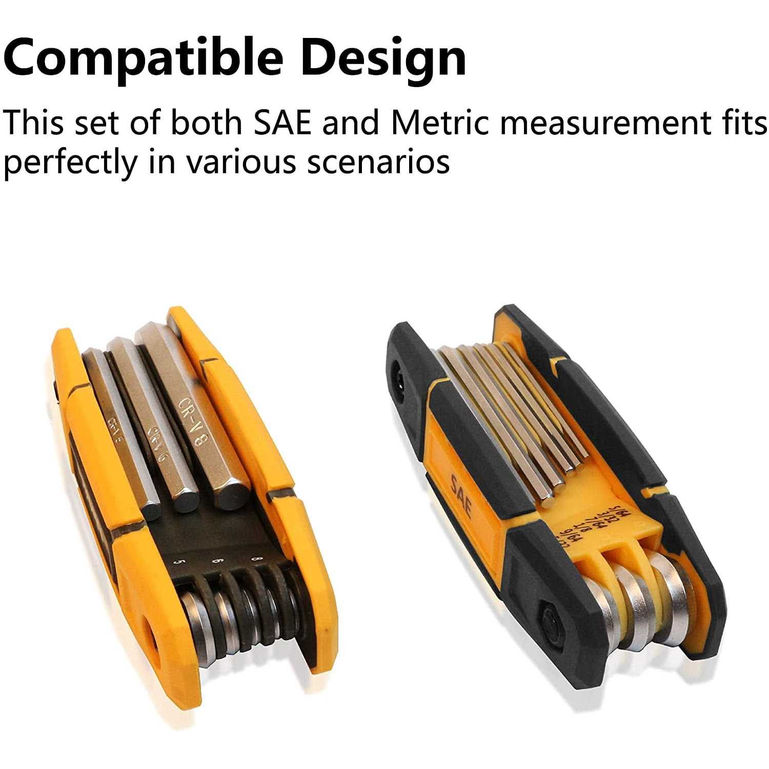 Hex Keys by MULWARK. Details:MulWark Folding Hex End Key Set features flexible allen head, compact foldable design, dual-material comfortable handle, easily-identified size markings, and perfect fit for bolts and screw heads. It goes into tight space where traditional straight hex key couldn’t achieve any effective torque.