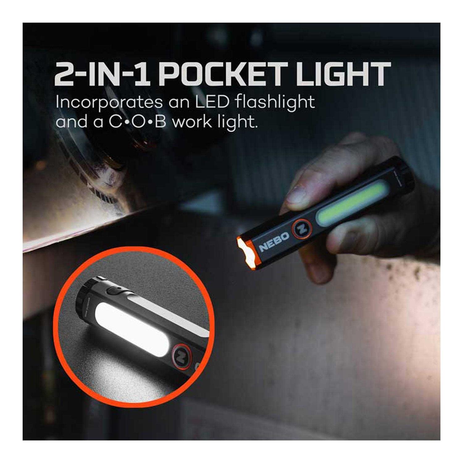 - NEBO Mini Larry Compact 500 Lumen Pocket Light with 450 Lumen COB Work Light
