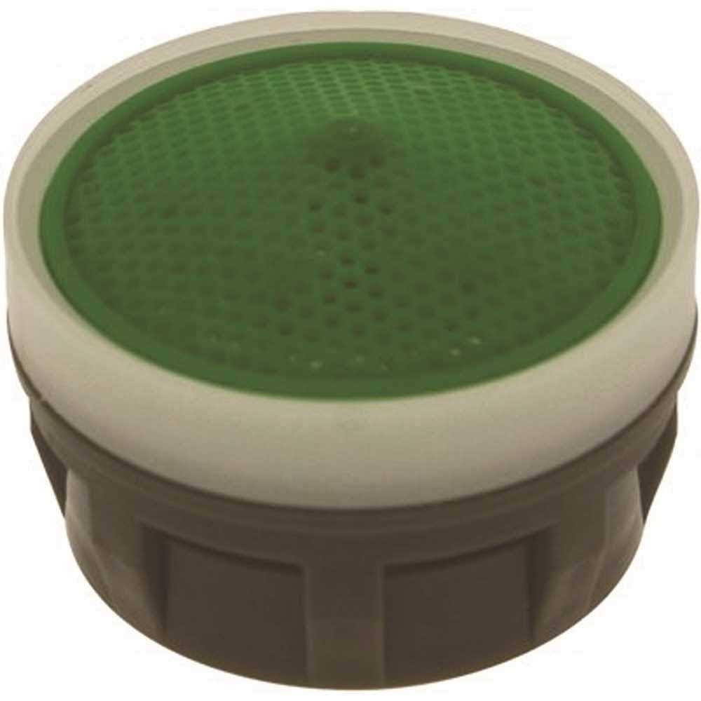 The NEOPERL Perlator 1.5 GPM junior aerator insert is flow restricted. This aerator features an anti-clogging green dome screen that filters sediment. The patented single-piece construction is virtually unbreakable and lime resistant. Aerated stream provides a soft-to-the-touch feel. Includes both male and female washers.