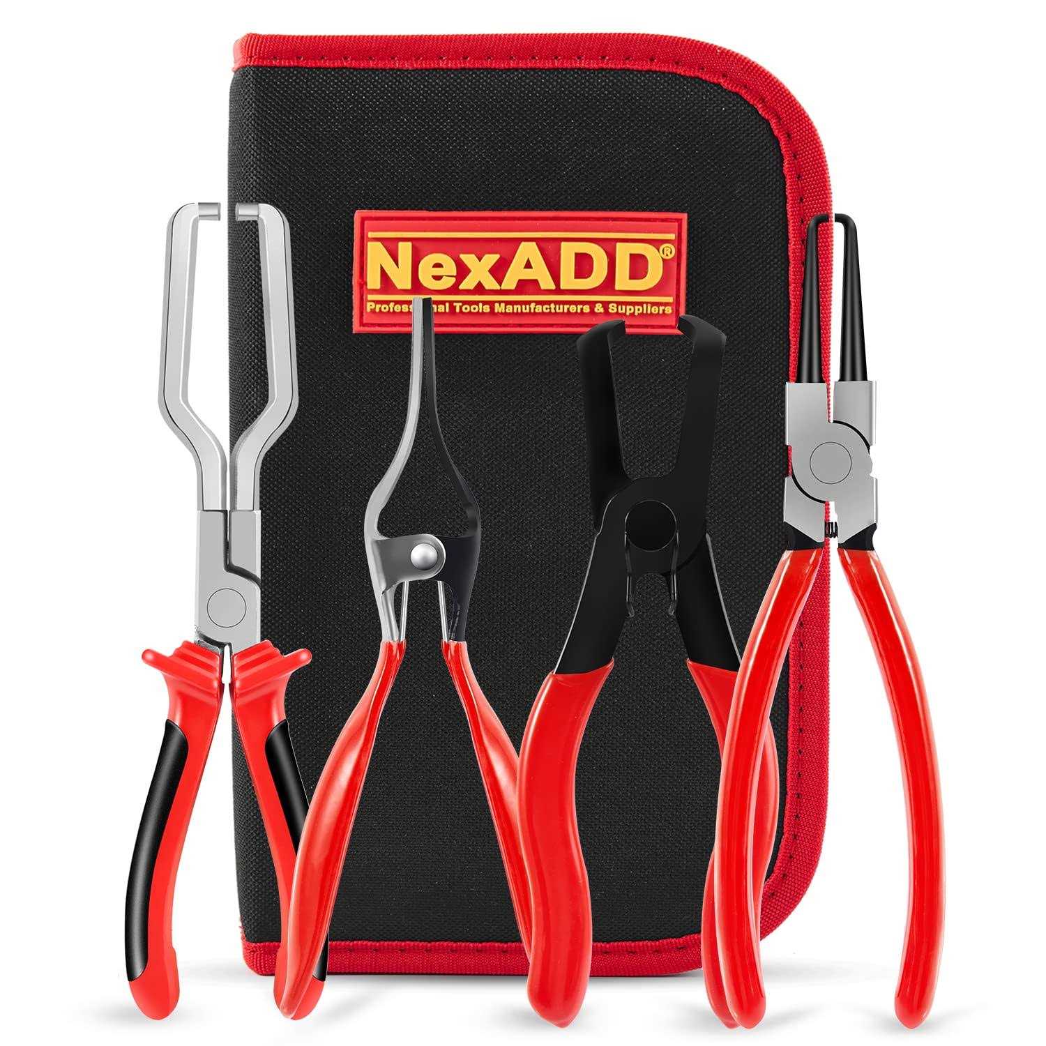 NEXADD Fuel Line Pliers Set 4pcs | Hose Remover | 9 inch Fuel Filter Caliper | Hose Pipe Clamp Clip | 80 Degree Disconnect Pliers Set for Auto