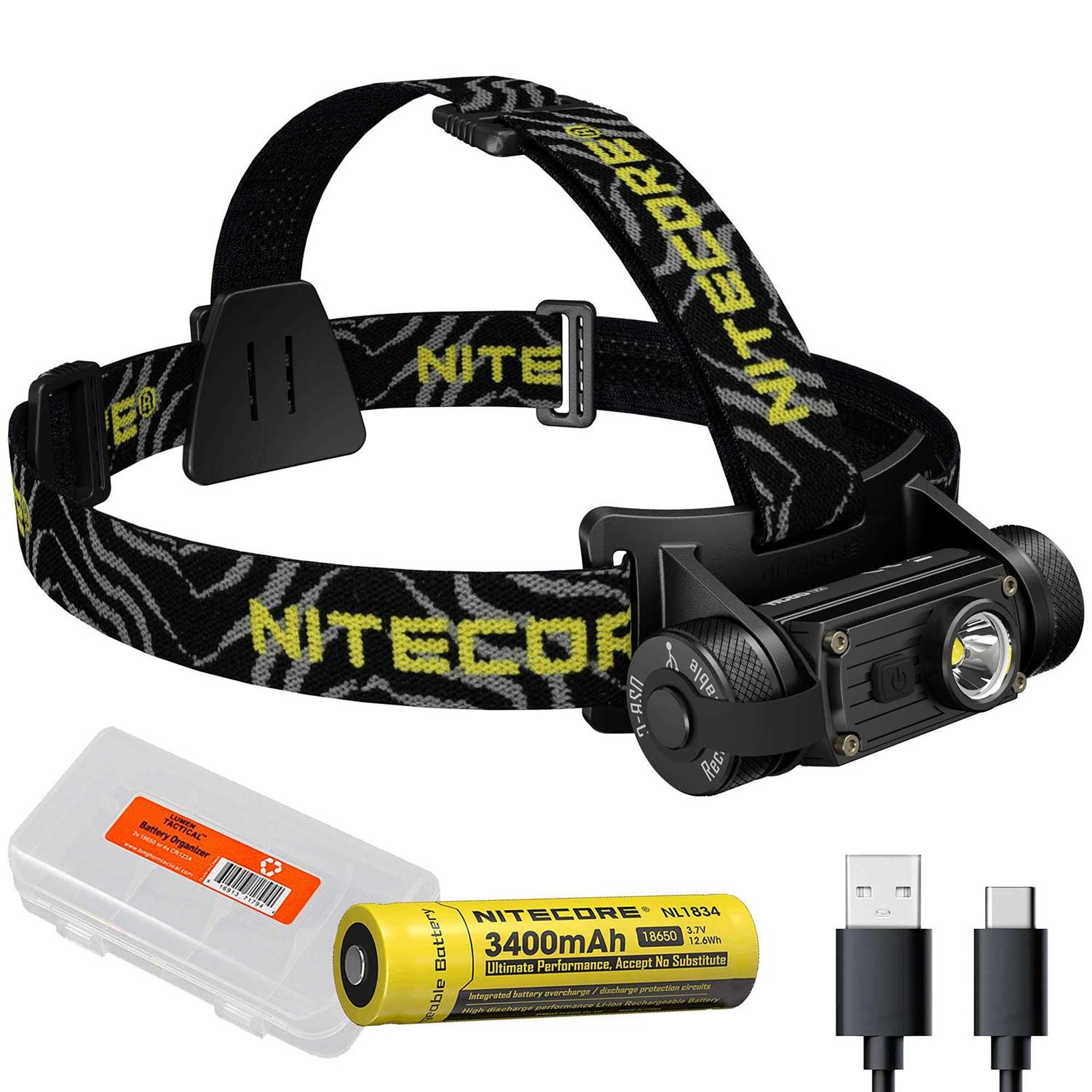 HIGH LUMEN HEADLAMP – Maximum of 1200 lumen output reaches up to 142 yards. Its 100° flood beam covers your entire field of vision. USB-C RECHARGEABLE – Fast charge the headlamp via its built-in USB-C charging port. Includes a 3400mAh high capacity battery. COMFORTABLE TO WEAR – Its adjustable headband comes with a silicone strip and a secure rubber pad which allows comfortable wear for a prolonged time. HIGH QUALITY – Durable and waterproof, HC60 V2 is a headlamp you can count on no matter if you are running, hiking, hunting or at work. It increases the max output to 1200 lumen, reaching up to 142 yards. Its 100° degree wide angle flood beam covers your entire field of vision. This makes the HC60 v2 an ideal headlamp for camping, running, trekking, biking, or any outdoor activities. No more fumbling with multiple switches in the dark. Hold the switch to power on and off. When the headlamp is on, tap the switch to cycle through different brightness levels and modes. The setting is memorized even after you turn off the headlamp. The HC60 v2 headlamp comes with an 3400mAh high capacity 18650 battery that supports an exceptional 680 hours of runtime on ultra low. You can fast charge the headlamp via its USB-C charging port. It is comfortable to wear with a secure rear pad and silicone grip strip on the headband. With the quality you can trust from Nitecore brand, the HC60 v2 headlamp is an indispensable tool you can count on no matter if you are at work or have fun outside. Specifications: * LED: OSRAM P9 * Maximum Brightness: 1200 Lumens lumen * Peak Beam Distance: 142 yards * Peak Beam Intensity: 4240 cd * IP Rating: IPX7 * Impact Resistance: 1 m * Brightness & Runtimes: ++++ Turbo: 1200 lumen / 45 min ++++ High: 450 lumen / 2 hr 15 min ++++ Mid: 250 lumen / 6 hr 30 min ++++ Low: 40 lumen / 26 hr ++++ Ultralow: 1 lumen / 680 hr ++++ High: lumen / 54 hr ++++ Mid: lumen / 145 hr ++++ SOS: lumens / 72 hr * Dimensions: L-3.31″xW-1.41″xH-2.11″ * Weight: 2.47oz