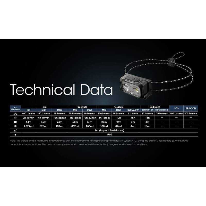 Equipped with an upgraded unibody optical lens system switch freely between a primary spot LED, offering three brightness settings, to the flood LED for even wide illumination, ideal for close up tasks and reading. Alternatively, switch to the dual red auxiliary LEDs and protect your night vision or a long lasting signal light. The lightweight NU25 takes the center stage as Nitecore’s new all-rounder headlamp for night running, outdoor adventures, or camping. The NU25 has a built-in 650mAh rechargeable battery that can achieve a maximum runtime of 45 hours on its lowest setting. Now with an integrated USB-C port the NU25 fast charges to full in only one and a half hours. A power indicator tells you when it’s time to charge while lockout mode prevents accidental activation. The intuitive dual button interface puts the controls right at your fingertips so you have more time to enjoy the surroundings. Ready for the outdoors? The NU25 is rated IP66 water resistant, features a bold new aerodynamic unibody design that efficiently dissipates heat and looks stylish to boot. Instead of traditional headband, it comes with a pair of paracord.