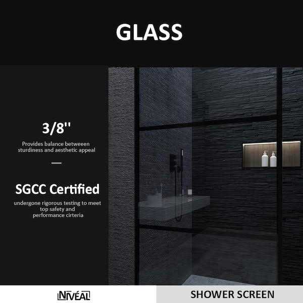 niveal Citron 34 in. W x 72 in. H Fixed Framed Shower Door in Matte Black Finish with Patterned Glass