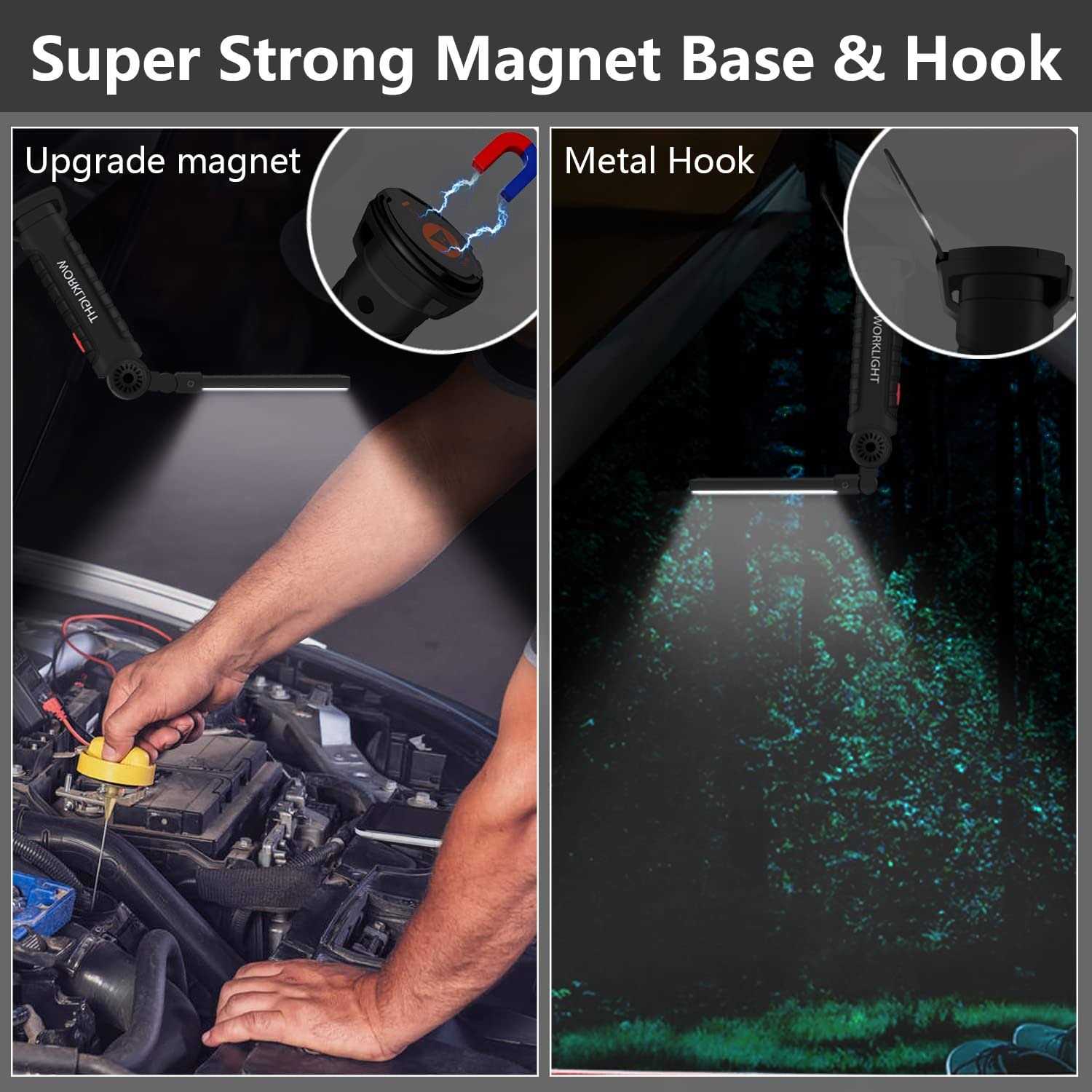 [Upgrade Magnet Base,Easy Stuck to Metal]Upgrading the magnet base,stronger suction,more easily stuck to metal [Upgraded Battery,Longer Usage]Old version battery,5h using time for low wihte light mode, upgraded battery, 5h using time for high wihte light mode [5 Lighting Modes,Meet Different Needs]High white light,dim white light, dom light,red light,red flashing light [360° Rotation,Light Up as You Want]Illuminating even the nooks and crannies [Magnet Base,Hanging Hook and Rope]Put anywhere you want, free your hands and improve work efficiency [Small and Light]Can be put in the pocket,use indoor and outdoor [Wide range of using]Dr. prepare led work light,Hand held led work lights for mechanics,Using as camping light,Portable lights for car fixing,BBQ Grill light,Emergency,Working,Gift for family Rechargeable Working Light