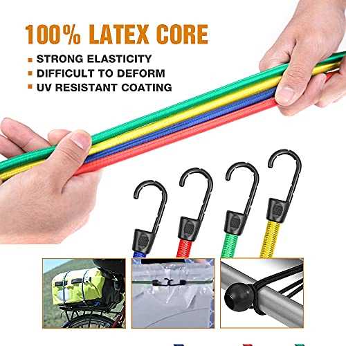 NOONE 24pcs Heavy Duty Bungee Cords with Hooks in Jar, 100% Latex Core Elastic Strong Bungie Straps Set Assortment, Includes 8”, 10”, 18”, 24”