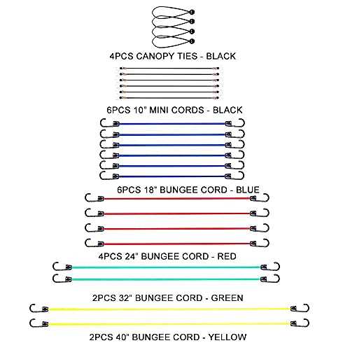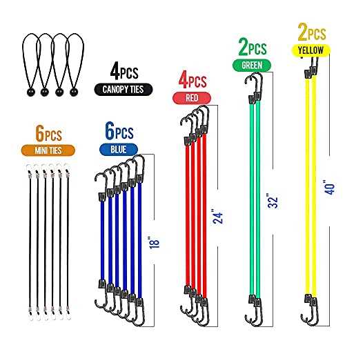 NOONE 24pcs Heavy Duty Bungee Cords with Hooks in Jar, 100% Latex Core Elastic Strong Bungie Straps Set Assortment, Includes 8”, 10”, 18”, 24”, 32”,