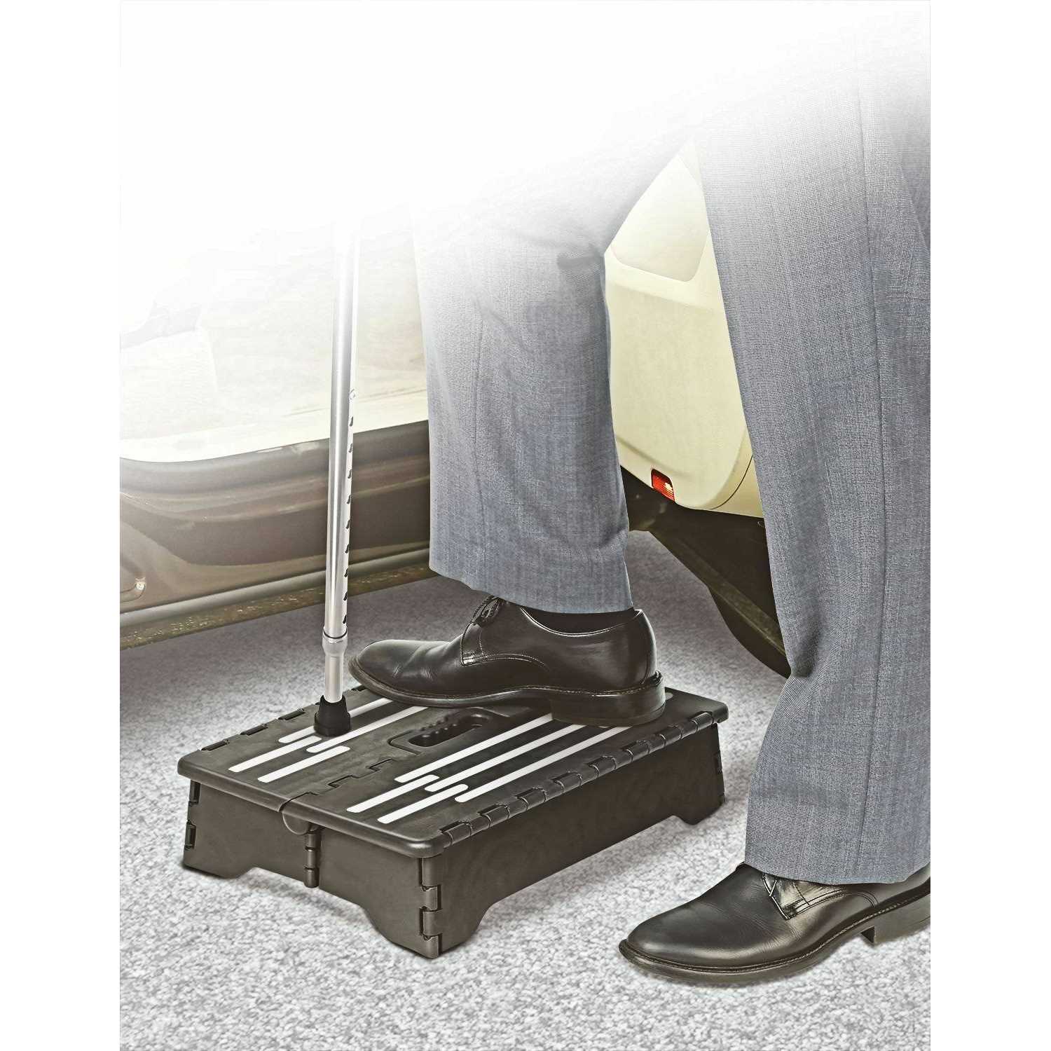 Get that extra few inches of base that you need by using this Portable Folding Step. The lightweight body makes it easy for you to transport from place to place. The folding step stool has a sturdy build that will remain secure when you stand on it. It can help you step down from somewhere, as well as step up onto something. This portable step stool can help you avoid having to step up on front door steps that can be tricky for those with limited mobility. It will also make it easier for you to get in and out of taller vehicles. This unit will make a useful addition to your other portable safety pieces. If it is challenging to step into your truck, RV or SUV, then the Portable Folding Step is a smart choice.