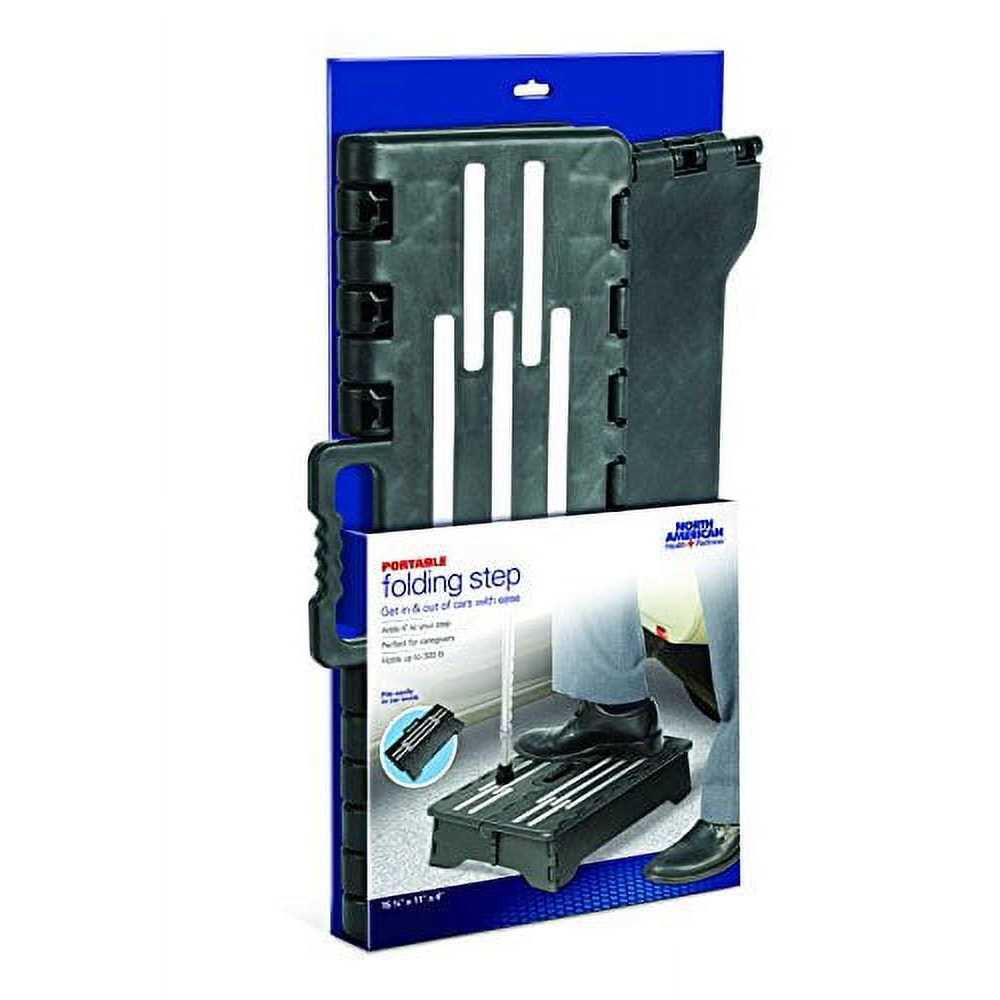 Add some safety to your daily routine with the North American Health + Wellness Portable Folding Step. It folds open and close for easy storage when not in use. This lightweight folding foot step is easy to carry with you on the go. It features a large platform that makes it more stable. The fold-up step is suitable for getting in and out of vehicles, bathtubs or bed. It also helps you climb large steps safely. This step has a no-slip surface that provides a safe amount of traction as you stand on it. It has a weight capacity of 300 lbs and features a grip handle for easy portability. The North American Health + Wellness Portable Folding Step is ideal for seniors.