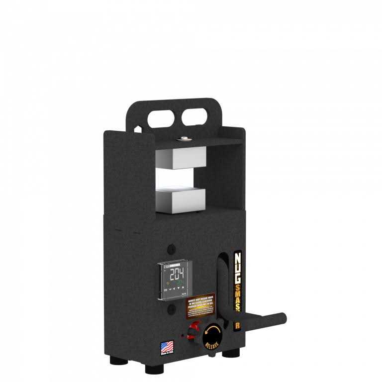 The Nugsmasher Mini Rosin Press is here for those who want Rosin on the go. Designed to press up to 2 tons with manual pressure, the Nugsmasher Mini can extract from up to 7 grams of material. The Nugsmasher Mini features aircraft-grade aluminum plates with a pair of 70-watt heating elements that include temperature control.