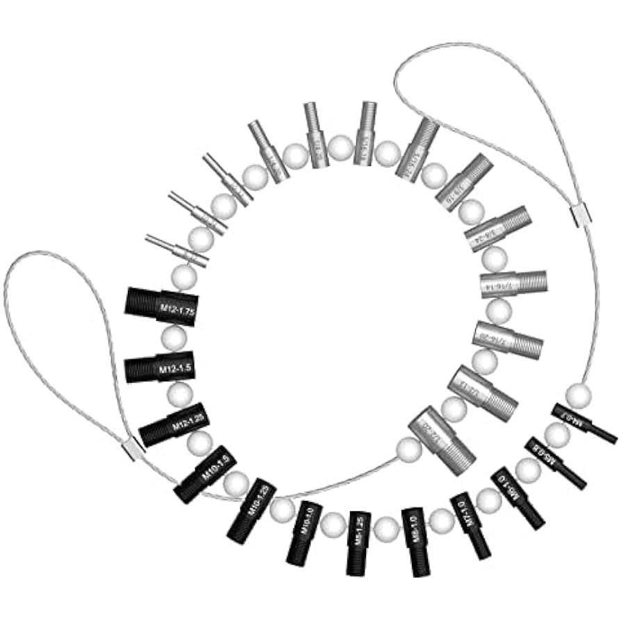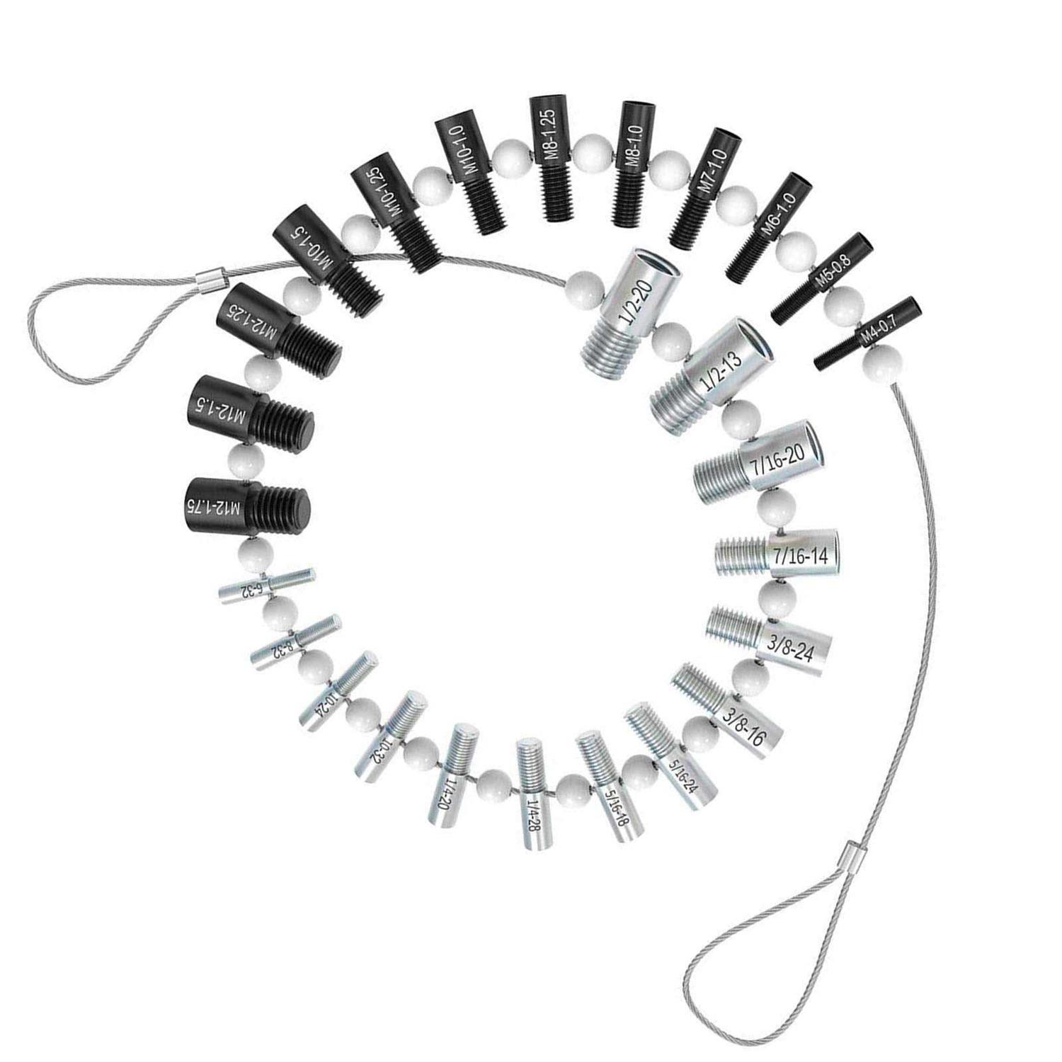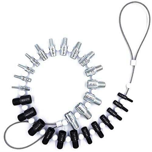 Nice Bundle: These thread gauges includes 26 male/female gauges – 14 inch & 12 metric. Each size has a nut and bolt checker on the same gauge. The individual gauges rotate freely on the wire cable for fast thread verification. Efficiency Improving: No more bent over the container looking for a nut/bolt to finish your project. Identifying the size and thread of nuts and bolts before making trips to the hardware store to match them, especially the nut or bolt that cannot be removed. Handy Tool Which You Should Have One: Excellent item for the mechanic; Applicable to mechanical repairs, or common threads in plumbing, air and gas connections, etc. Organize your garage and sort your nut & bolt with this nice tool, save your valuable time. Convenient hanging: The wire cable of this thread identifier with loop for hanging it on the wall in your workshop or garage beside your toolbox. Quality Process and Material: These nut & bolt thread checkers are made of strong stainless steel. Inch gauges are clear zinc plated, metric gauges are black oxide. Thread sizes are permanently carved on each gauge with distinct mark, which makes the mark easy for you to tell.
