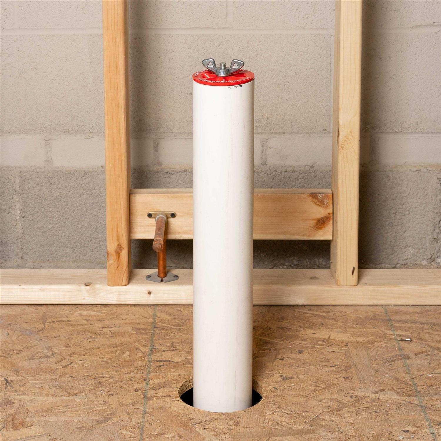 The Sioux Chief Test Titan mechanical test plug has an innovational approach with a proven performance. Four non-corrosive components provide a seal to the top of the pipe while the hollow stem allows for convenient filling/draining through the plug. Polypro wingnut nylon top plate soft PVC gasket and nylon base/stem for simplicity and strength. For head tests. Provides a leak-free seal at over 8 times the PSI of other mechanical test plugs. Back to front wedge design prevents blowouts at high and low temperatures. Nonslip shoulder for fast easy installation.