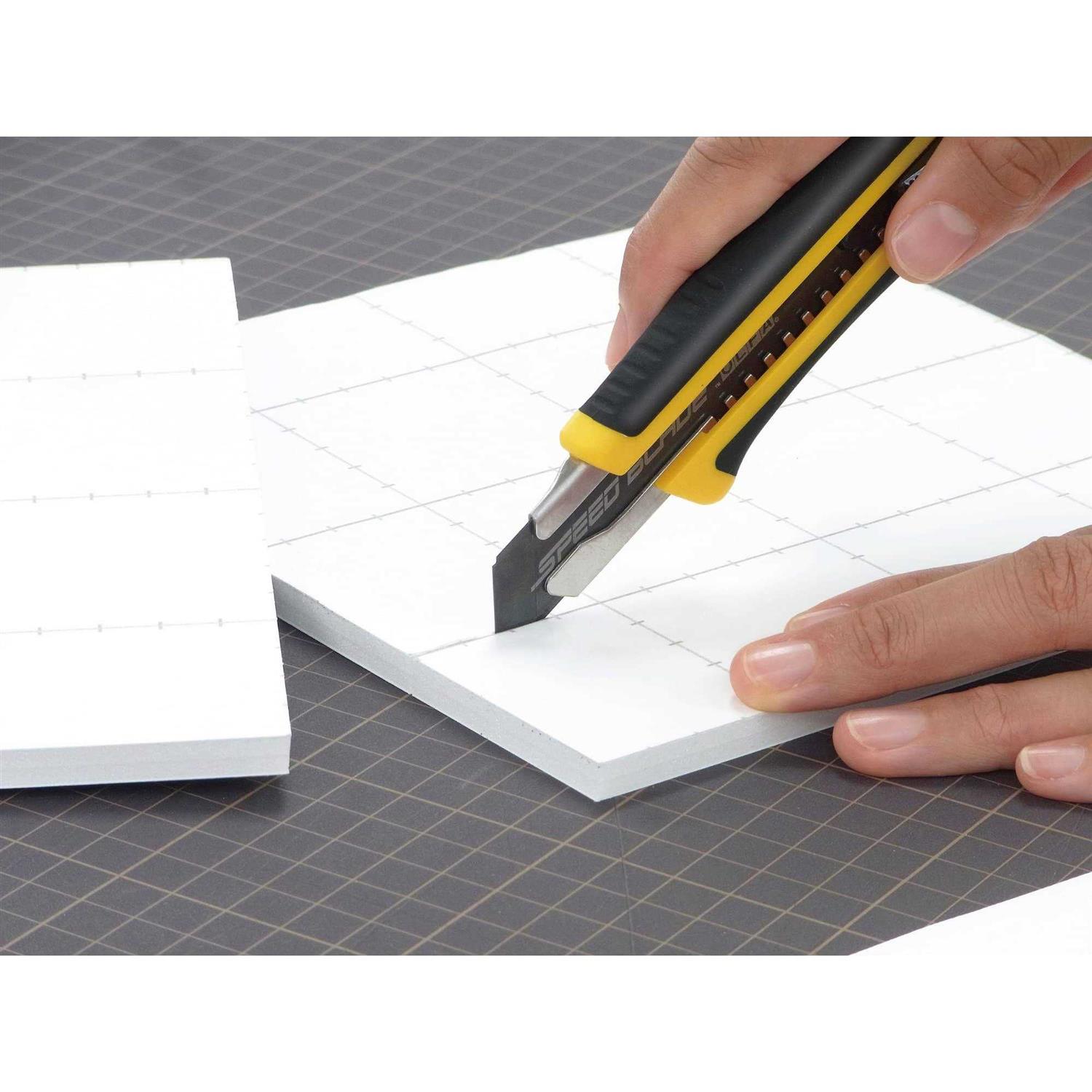The OLFAĀ LA-X fiberglass reinforced utility knife with wrap-around rubber grip, lets you work with confidence. The ergonomic pistol-grip handle contours to the hand, making this knife your go-to cutting tool. The rugged stainless steel blade channel extends the full length of the handle to support heavy-duty cutting. The auto-lock blade slider allows for quick and easy one-touch blade extension into multiple cutting depths. The knife includes a multi-purpose metal pick for all of those tasks where you should not use your blade tip. It is ideal for opening paint cans, removing plate covers, cleaning out caulk and more. Plus the handle is chemically resistant to paint and MRO environments. Use this utility knife for any heavy-duty cutting applications such as construction, drywall, carpet, flooring and more.