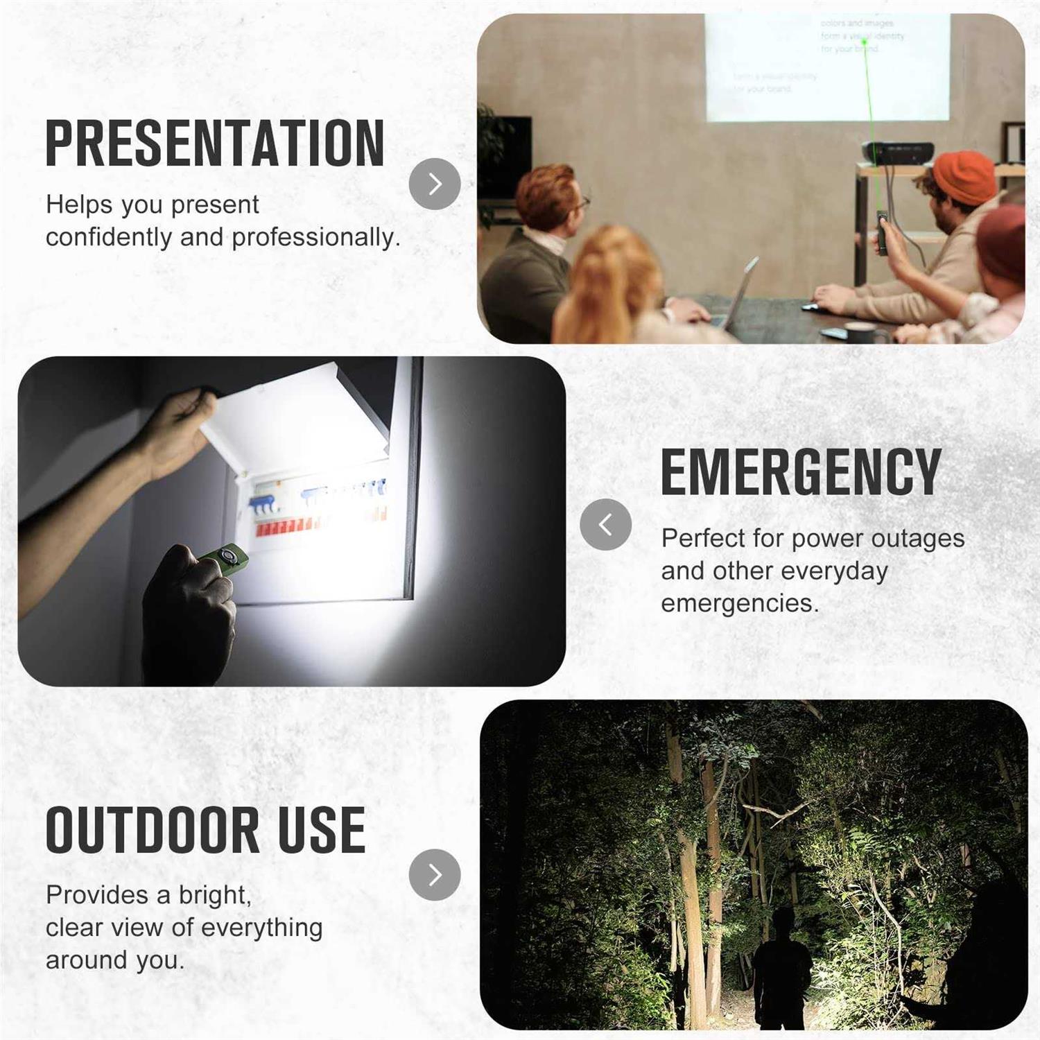 - [Flashlight with a Green Beam] The output of the green beam is ≤0.39mW, Class 1. It is within the safe range and does no harm to humans and animals.