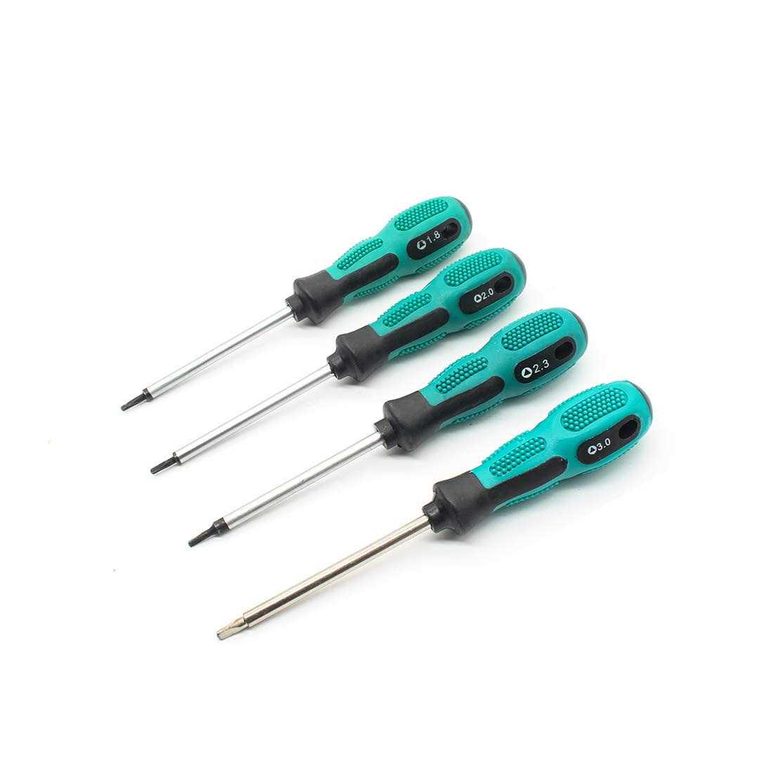 Material: Chrome Vanadium Steel (CR-V) Triangle screwdriver head size:1.8mm/ 2.0mm/ 2.3 mm/3.0mm Anti-slip rubber handle,comfortable to hold.Professional and practical design, beautiful appearance, easy to carry and use. Package Contents: 4 x Screwdriver Features: 100% new and high quality Excellent toughness and hardness performance Handle hanging hole design for easy storage and carrying Its handle is comfortable to hold, effective slip resistance, suitable for long hours of operation Specification: Material: Chrome Vanadium Steel (CR-V) Type: Triangle 1.8mm/ 2.0mm/ 2.3 mm/3.0mm Length:160mm Length:160mm Color: Green Package:4*screwdriver