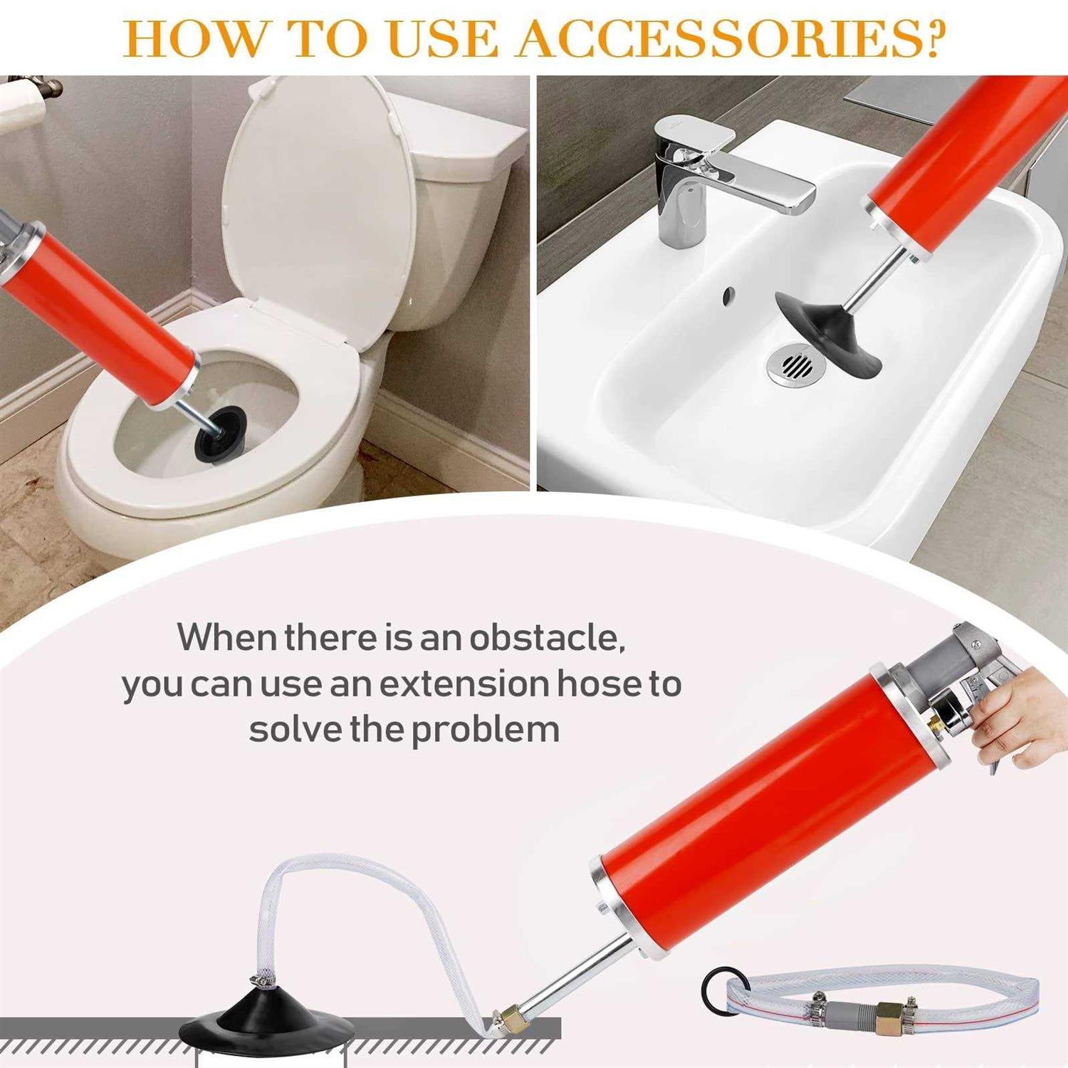 Olpchee Portable High Pressure Kinetic Toilet Plunger Air Drain Blaster Pump for Bath Toilets Bathroom Shower Kitchen Clogged Pipe (Red)
