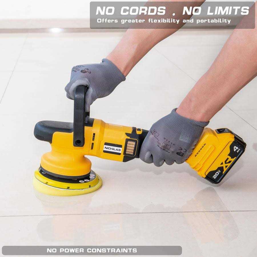 Brand: NichilasColor: YellowFeatures: 【NOTICE】 Battery DO NOT Include ! ! ! Car Polisher Tool Only ! ! ! I 【BRUSHLESS MOTOR】 Brushless motor of the portable car polisher have great efficiency and longer service life. Cordless polisher makes off-site jobs easier, gives freedom to roam. And it will not scratch paint since it is battery powered. 【6 SPEEDS CONTROL】 Orbital Polisher with 6 speed control dial allows you to adjust the car polisher speed between 750 to 6800 rpm, as per your usage. Namely, the low speed can be used for waxing, buffing, the medium speed for polishing, cleaning and the high speed for removing paint defects and oxidation. 【LOCK BUTTON】 Car polisher with the lock button easy operating with no fatigue. The adjustable handle (D handle, side handle) and the rubberized body provides you with a comfortable grip and non slip control, while in use. 【ECCENTRIC SHAFT DESIGN】 The eccentric shaft design of our polishing machine keeps the pad never always working on the same spot even if you don’t move the machine during use. 6inch 150mm throw orbit makes the force evener and the polishing area larger. 【PROFESSIONAL ACCESSORIES】 1 x D handle, 1 x side handle, 6 x sandpapers, 6 x sponge polishing pads, 1 x wool pad, 1 x hex key, 1 x user manual. It can be used for polishing, buffing and sanding for vehicles, cars, bikes, boats, kitchen, bathroom tiles, wood and more. model number: DWPGJ01EAN: 0653871732459Package Dimensions: 16.5 x 6.7 x 6.6 inches