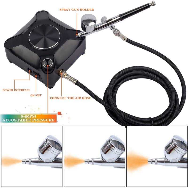 • 40PSI Airbrush Compressor:The Max working pressure of the airbrush compressor is 40PSI,that will meet with most working requirement
