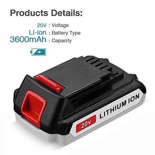 Upgraded 2Packs 3600mAh 20 Volt Max Lithium Ion Battery Lbx20 Replace for Black