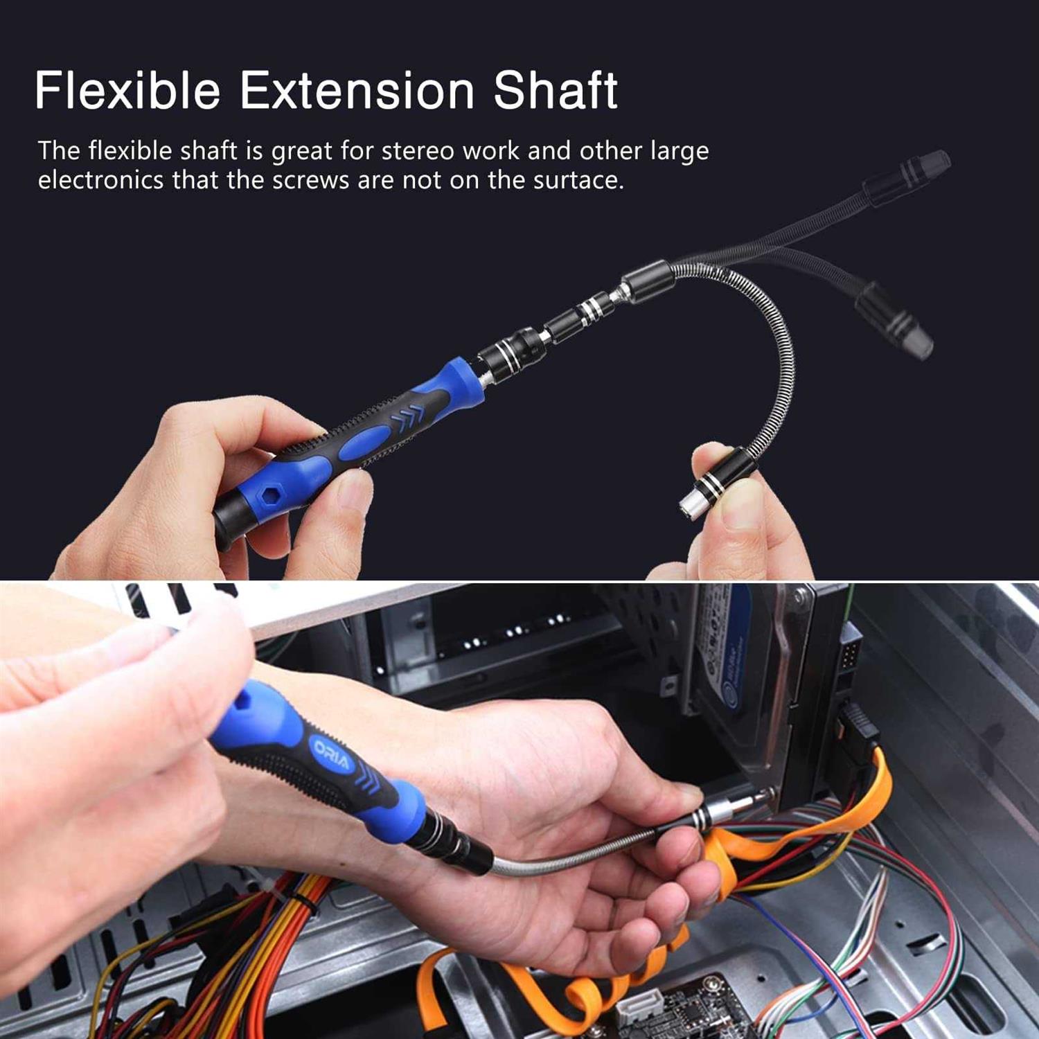 Flexible Shaft : A flexible shaft is included, which is great for stereo work as well as other large electronics where the screws are not on the surface. High Quality : The Unique non slip driver in the market is machined from a single piece of aluminum, and cover with the Silica gel, it also with a ball bearing mounted swivel top to make the work more easily. Portable : Professional portable hardware tools with perfect weight & compact design for easy carry. Multi-Magnetic Screwdriver : 60 in 1 Precision Screwdriver Set is designed to service all popular laptops, phones, game consoles, and other electronics. Variety of Bits : 56 different kind of bits made of chrome-vanadium steel are carefully selected by Oria to meet all your need. Flexible Shaft : A flexible shaft is included, which is great for stereo work as well as other large electronics where the screws are not on the surface. High Quality : The Unique non slip driver in the market is machined from a single piece of aluminum, and cover with the Silica gel, it also with a ball bearing mounted swivel top to make the work more easily. Portable : Professional portable hardware tools with perfect weight & compact design for easy carry.
