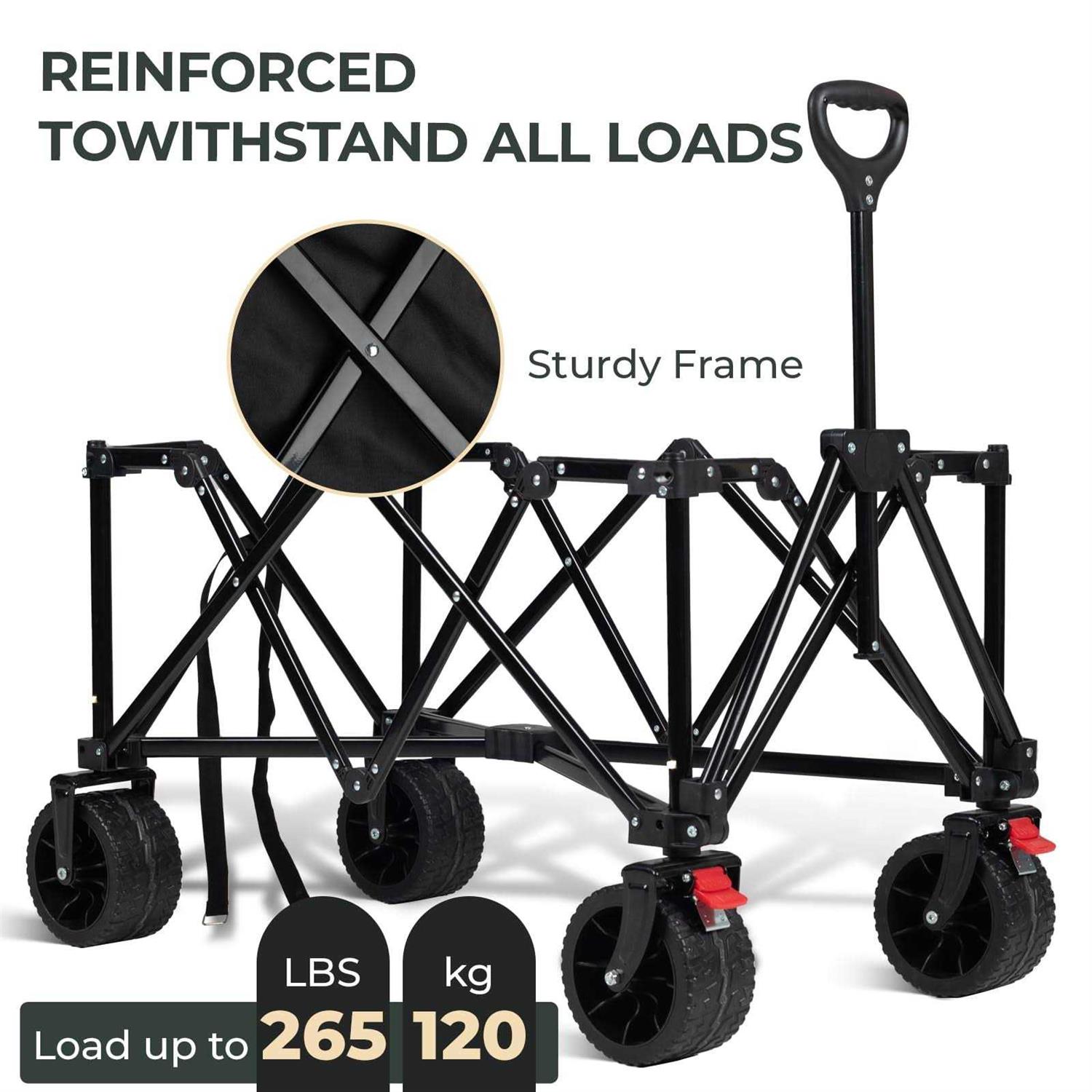 Overmont Collapsible Foldable Beach Wagon with 265lbs Weight Capacity Heavy Duty Folding Utility Garden Cart with Big All-Terrain Detachable Wheels