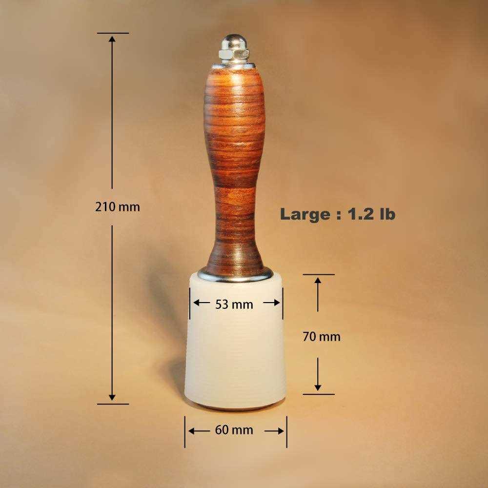 Provide two different sizes for artists to choose,Large size (1.2 Lb) and Small size (1 Lb) Hammer head material made of high quality nylon, A non-skid hammerhead allows the artist to better control each tap. The leather wrapped handle has a nice touch with the artist’s hand.It will Reduce shock,anti-slip,anti-sweat etc.,Reduce fatigue when used for a long time. The hammer is ergonomically designed and proportioned to the artist’s best use.