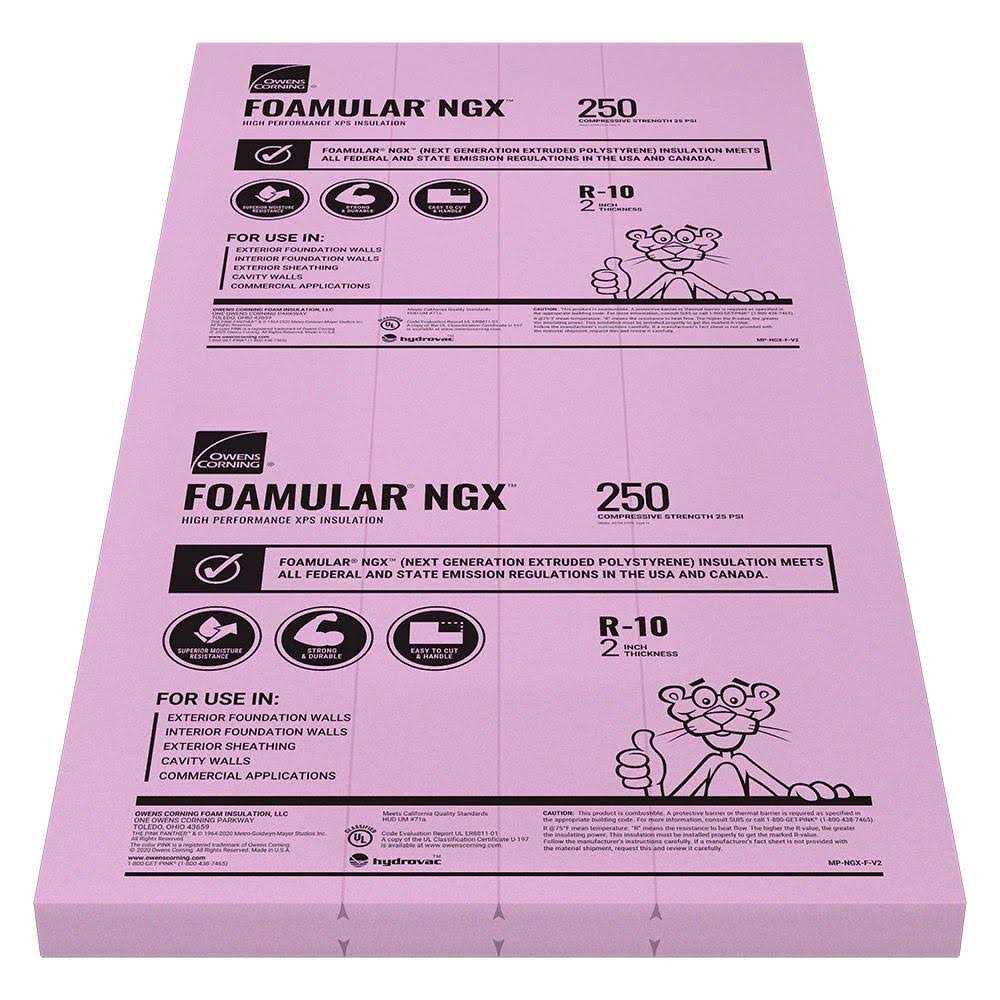 Owens Corning FOAMULAR NGX (Next Generation Extruded) insulation, is produced with a proprietary blowing agent that delivers a 90% reduction to Global Warming Potential (100 year) compared to current FOAMULAR. Foam insulation boards are easy to handle, score, cut and install & no special tools are needed. Foam insulation products can be used on wood, steel framing or concrete walls. FOAMULAR NGX resists moisture and retains R-value even after exposure to standing water and wet soil. Owens Corning FOAMULAR NGX insulation offers all the physical properties and ease-of-use you expect from Owens Corning FOAMULAR insulation with industry-leading sustainability.
