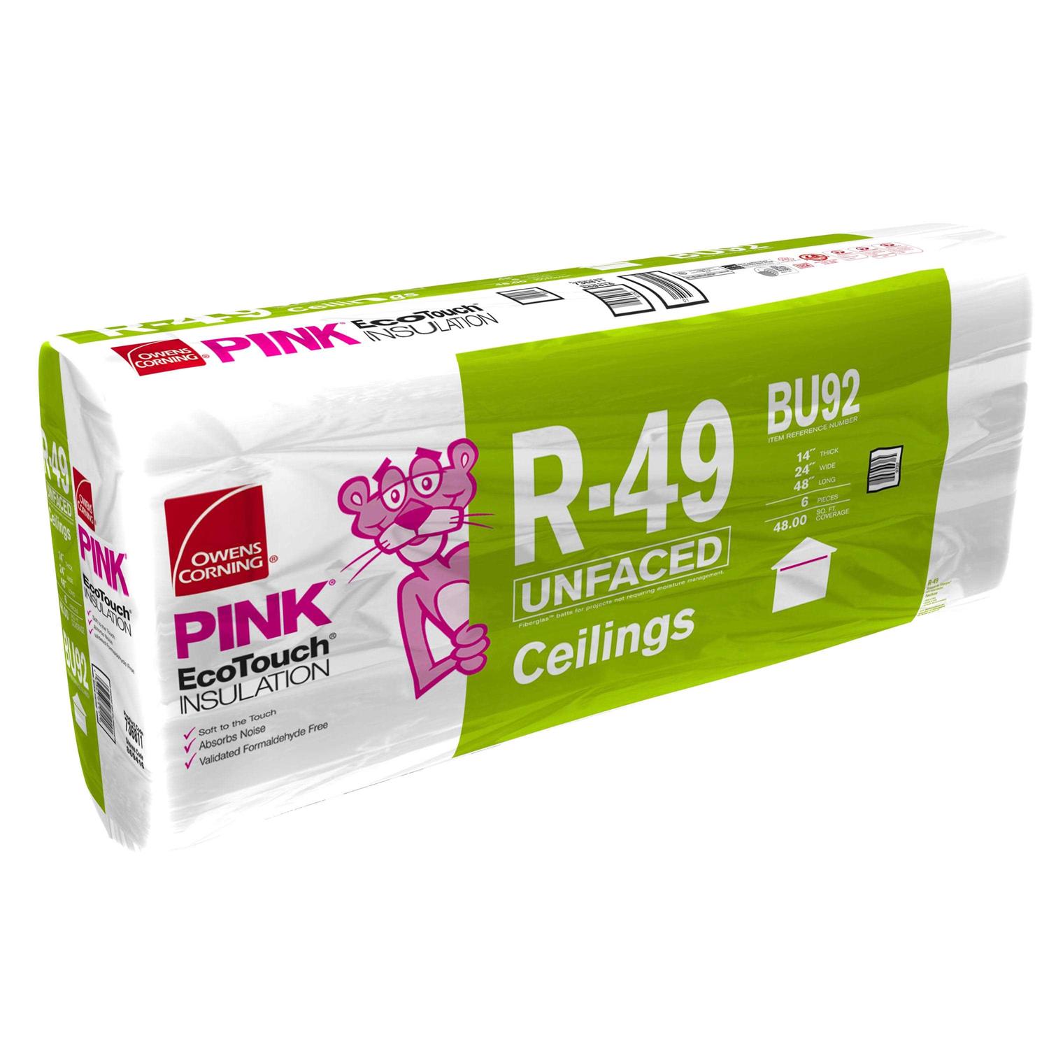 The Owens Corning R-49 Kraft Faced Batt is a flexible fiberglass insulation proposed to control moisture in concealed applications in between the studs and joists. With a paper facing on one side of the insulation, the R-49 Kraft Faced Batt Insulation is smooth and flexible and can be easily cut for installation. However, it is available in pre-cut lengths for easy and quick installation. This Insulation from Owens Corning serves as a vapor barrier and bounds the home to stay cooler in summer and warmer in winter. This energy-efficient product saves you from extra monthly expenses on heating and cooling for extended life of the home. The Owens Corning R-49 Kraft Faced Batts are used for roof/ceiling and interior/exterior wall applications and can be installed in wood or metal framing cavities or between furring channels. Size Sq Ft/Pack Batts Per Bag IRN Application 14 in. x 16 in. x 48 in. 32 6 BF92 Wood 14 in. x 24 in. x 48 in. Can be stapled or friction-fit. Easy to handle and install. Trim and fabricate with a utility knife. Meets thermal specifications. Improves interior noise control. Inorganic. Non-corrosive to steel, aluminum or copper. Dimensionally stable and will not decay or slump in the cavity.