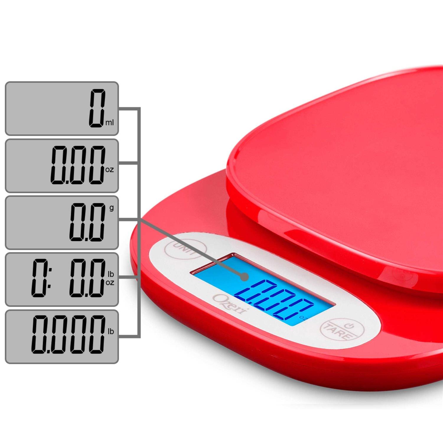 Ozeri ZK420 Garden and Kitchen Scale with 0.5 G 0.01 oz Precision Weighing Technology, Red