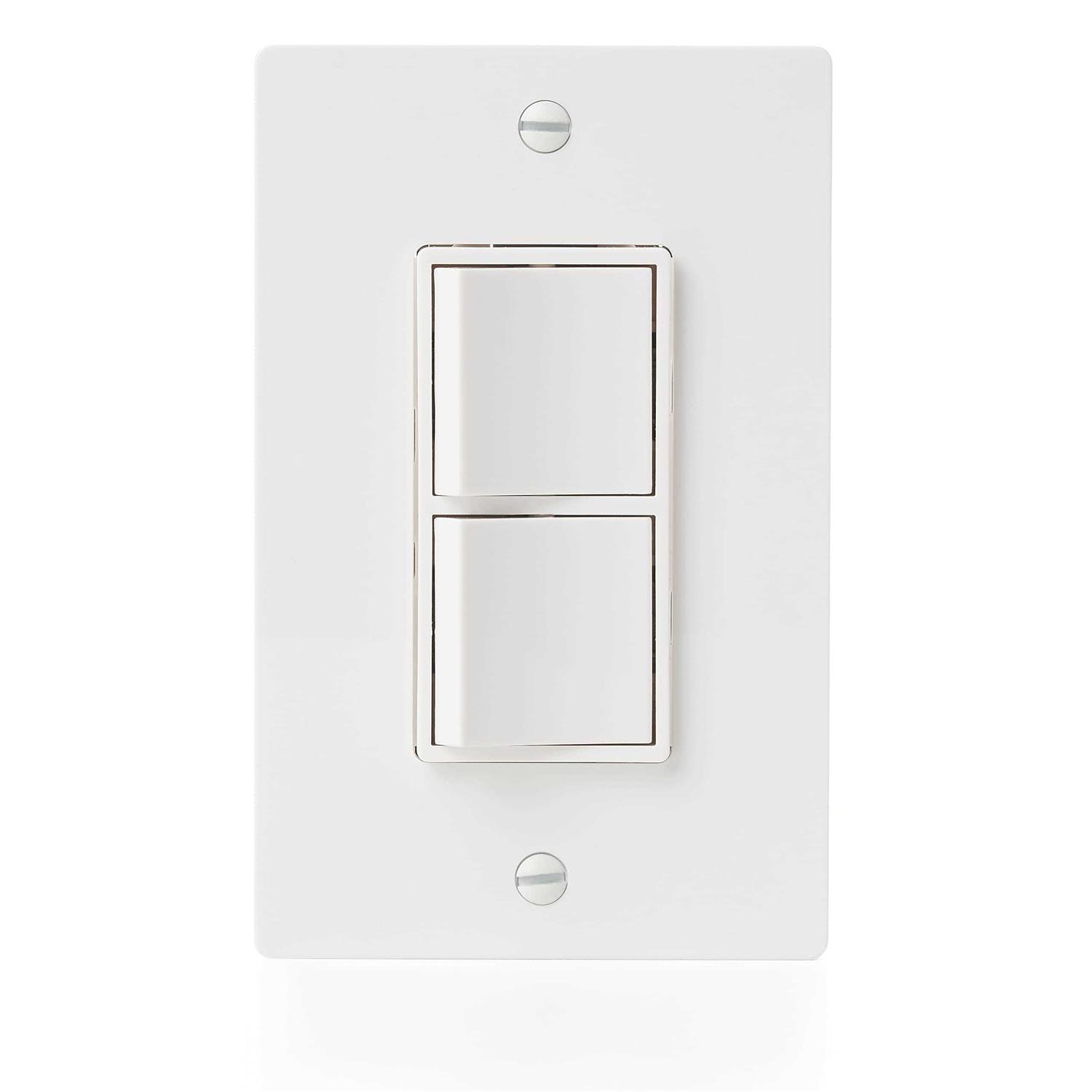 Panasonic ecoswitch 2-Function whisper control switch in white color, lets you control current, LED lighting and DC motor loads efficiently. The decorator styling, wall-mountable switch provides multiple controls in a 1-Gang wall box. The commercial grade switch comes with a matching wallplate. It is suitable for fan and light. Whisper control wall switch meets UL, cULus and CSA standards.